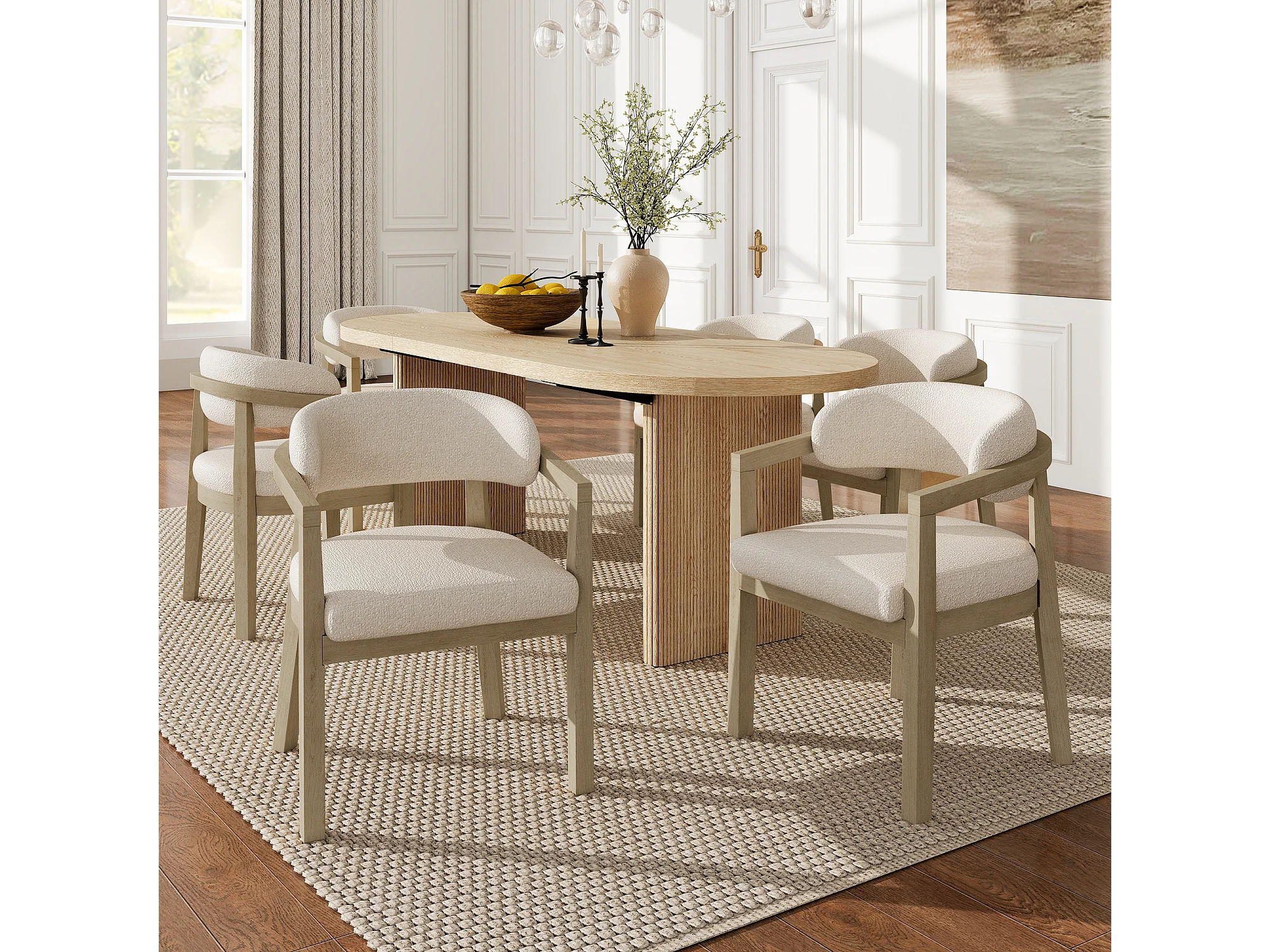 Lot de 2 chaises de salle à manger en bois massif - 58 x 58 x 78 cm - Style moderne - revêtement bouclé - naturel