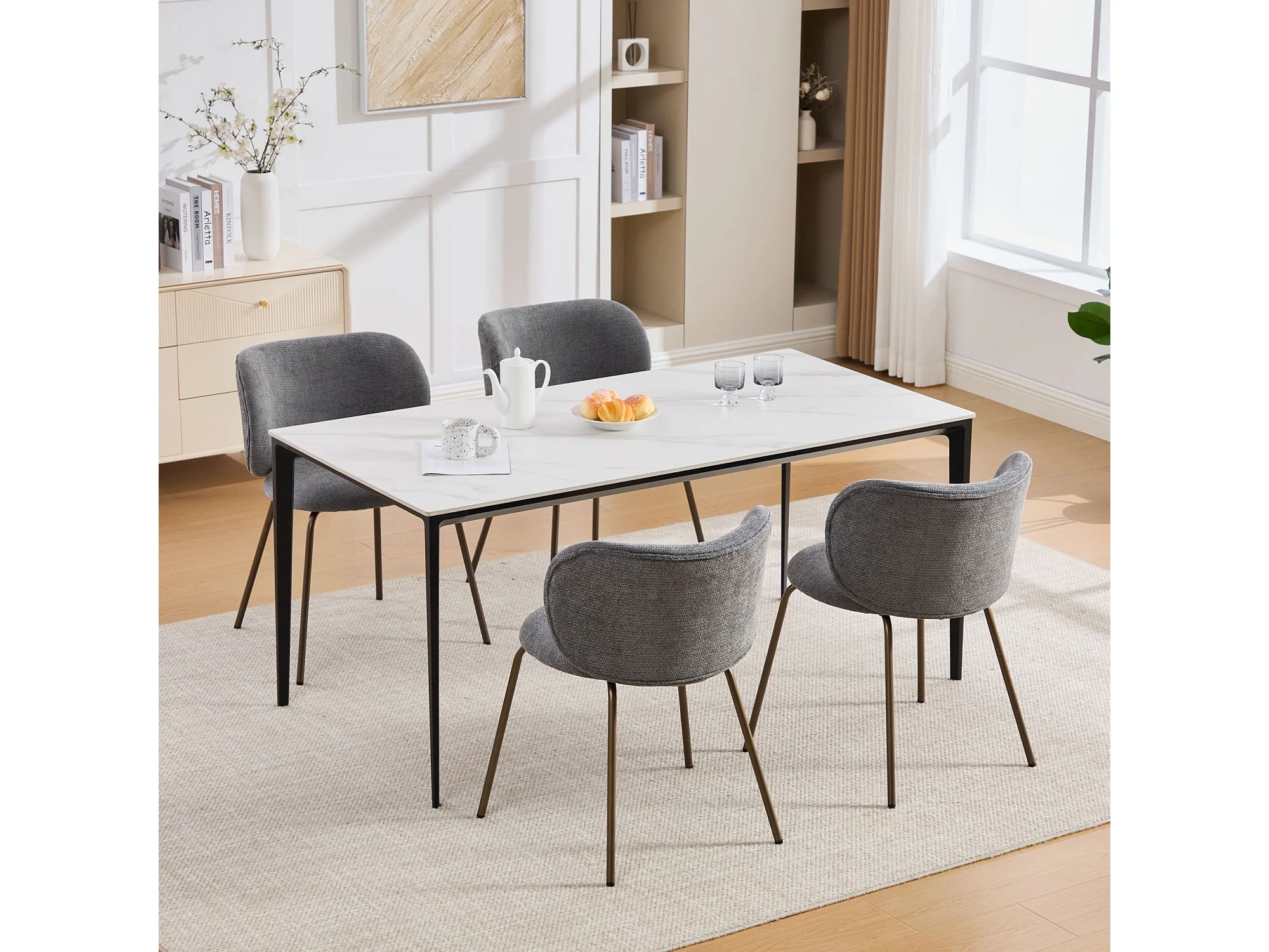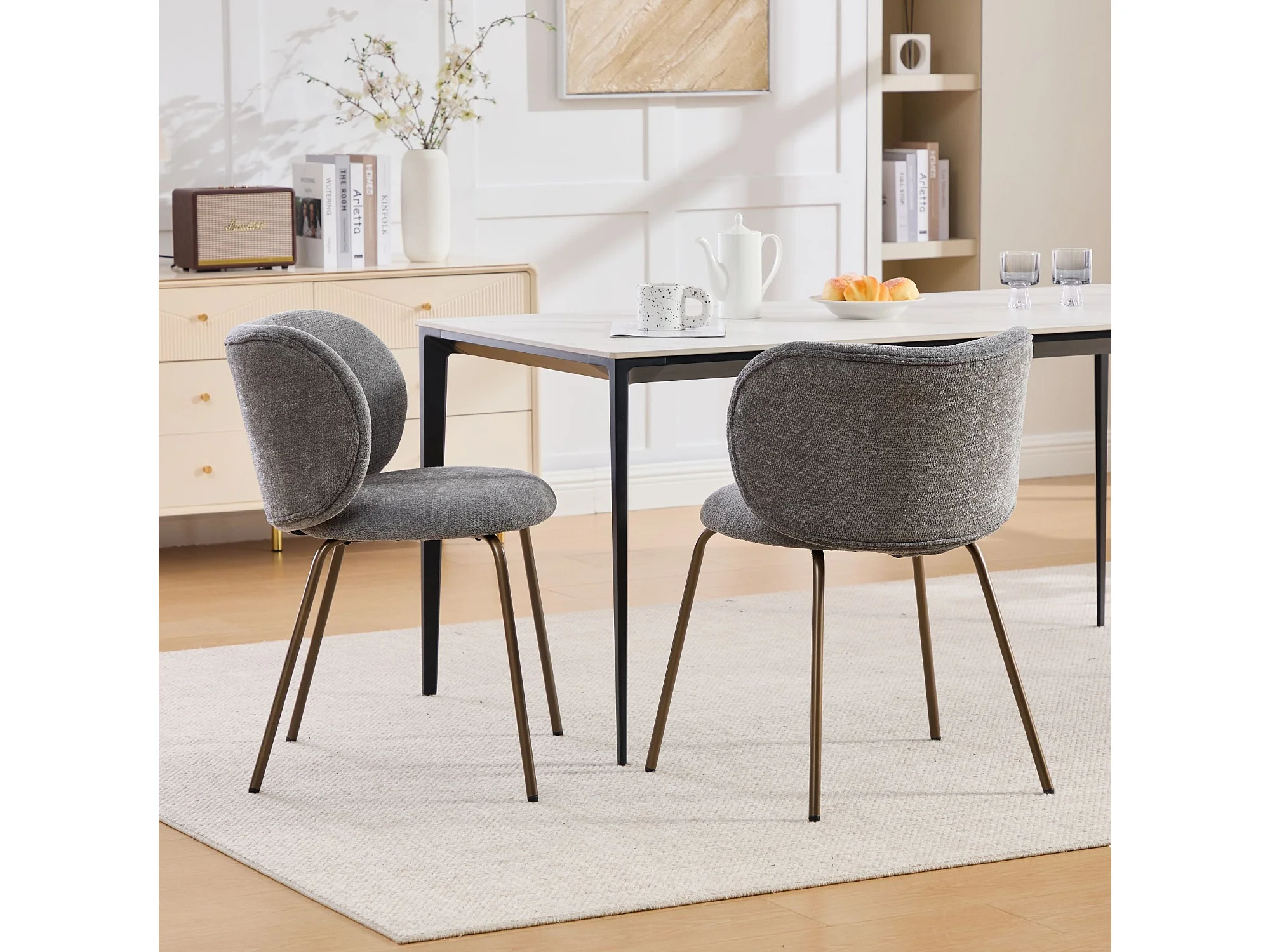 Lot de 2 chaises de salle à manger en chenille moderne – gris, dossier incurvé confortable, assise douce, pieds en métal bronze