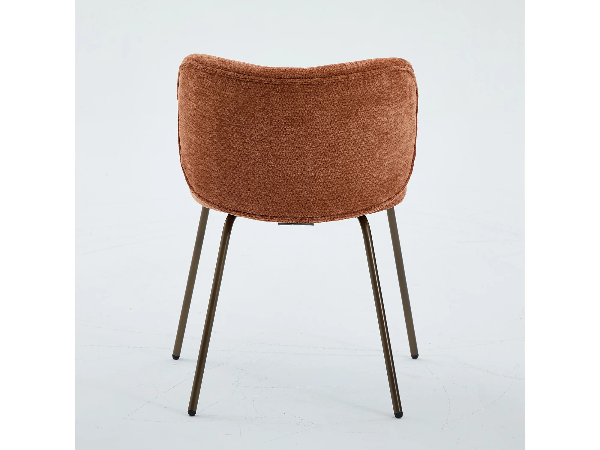 Lot de 2 chaises de salle à manger en chenille - Pieds métal bronze - Couleur orange