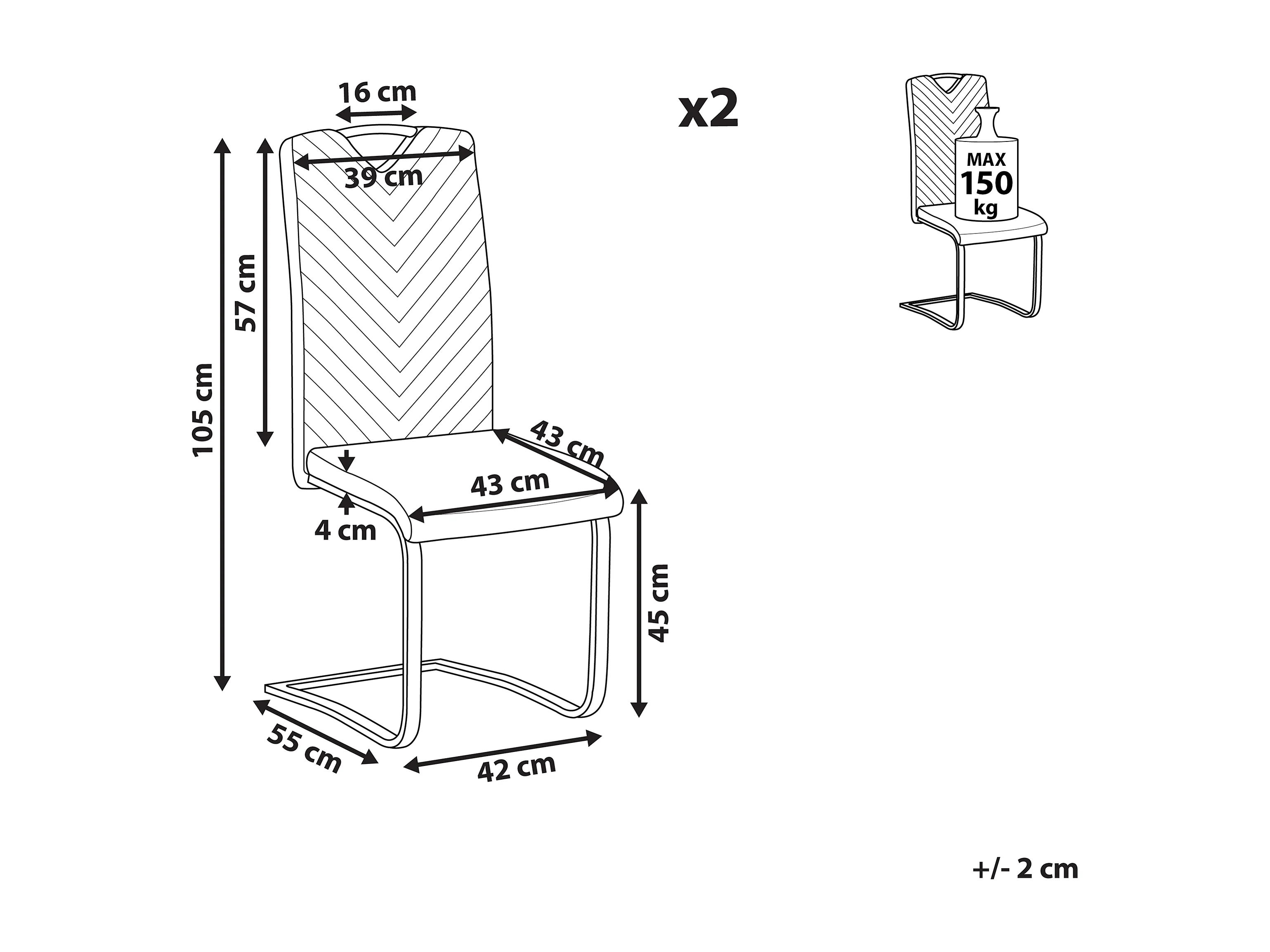 Lot de 2 chaises de salle à manger PICKNES Cuir PU Noir