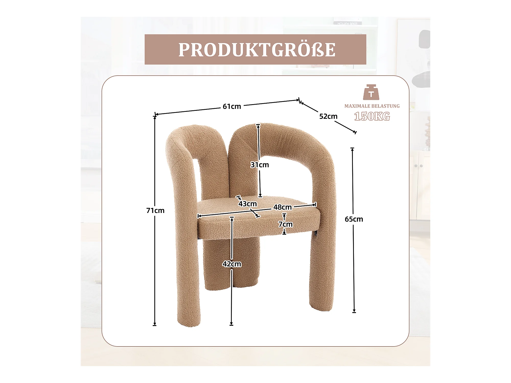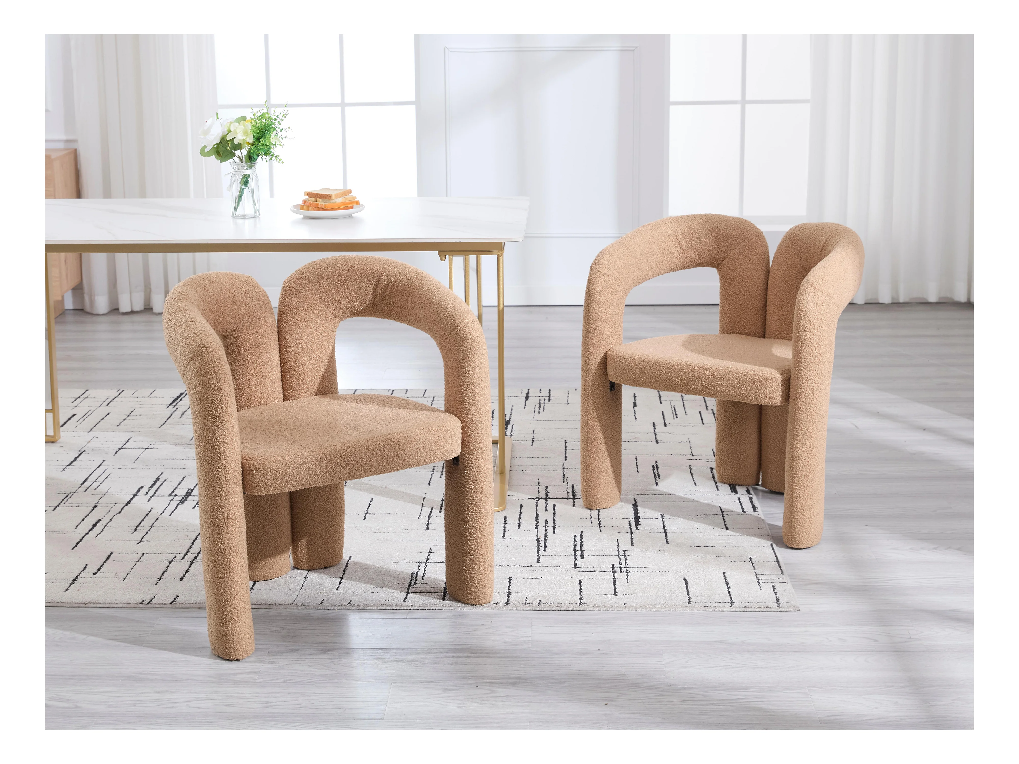 Lot de 2 chaises de salle à manger — en teddy camel — accoudoirs design à deux arcs - élégant et confortable