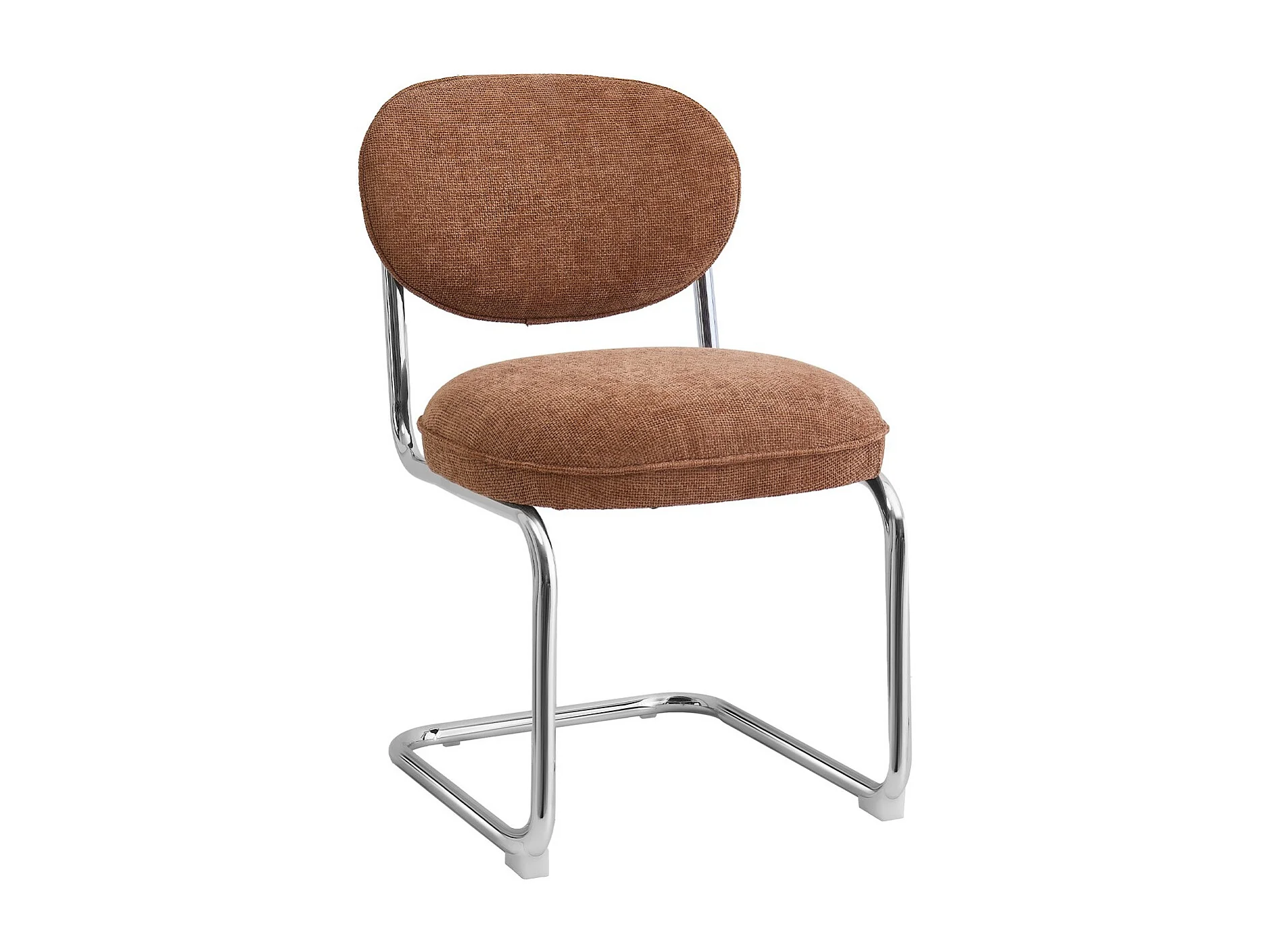 Lot de 2 chaises de salle à manger en tissu chenille terracotta, piètement chromé - Lou