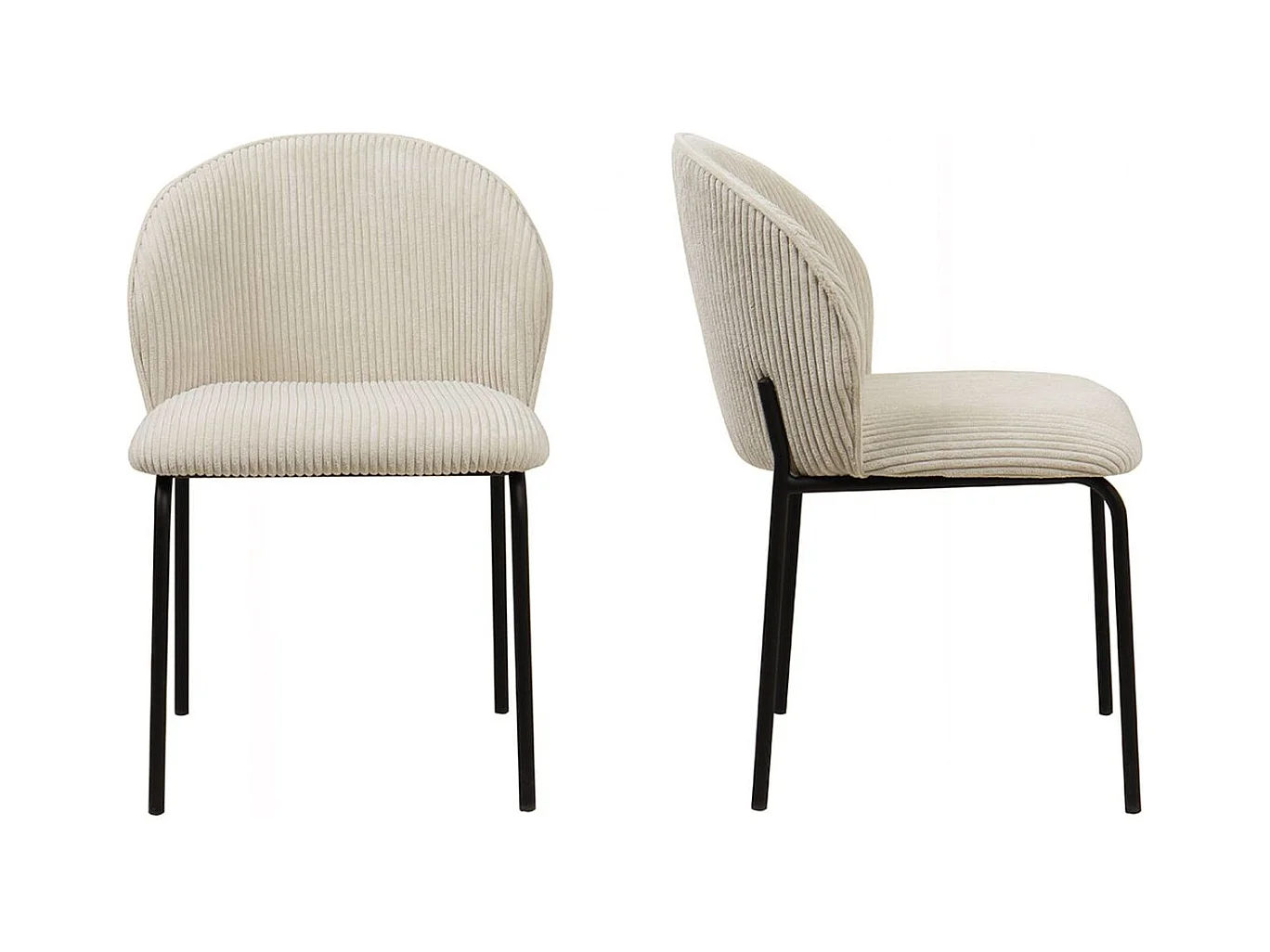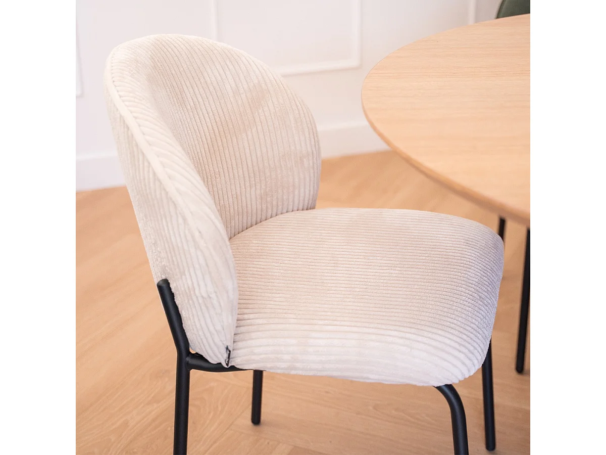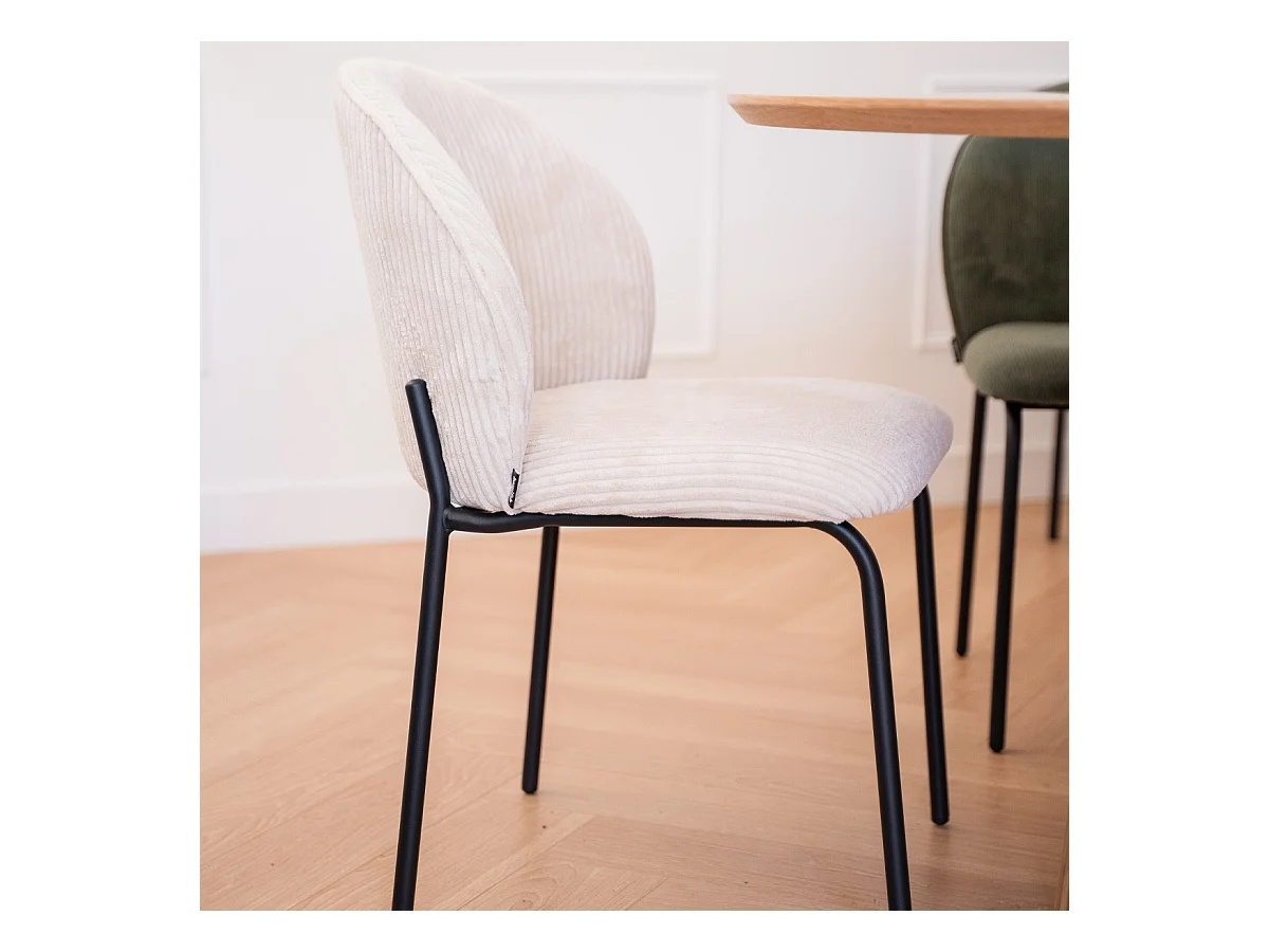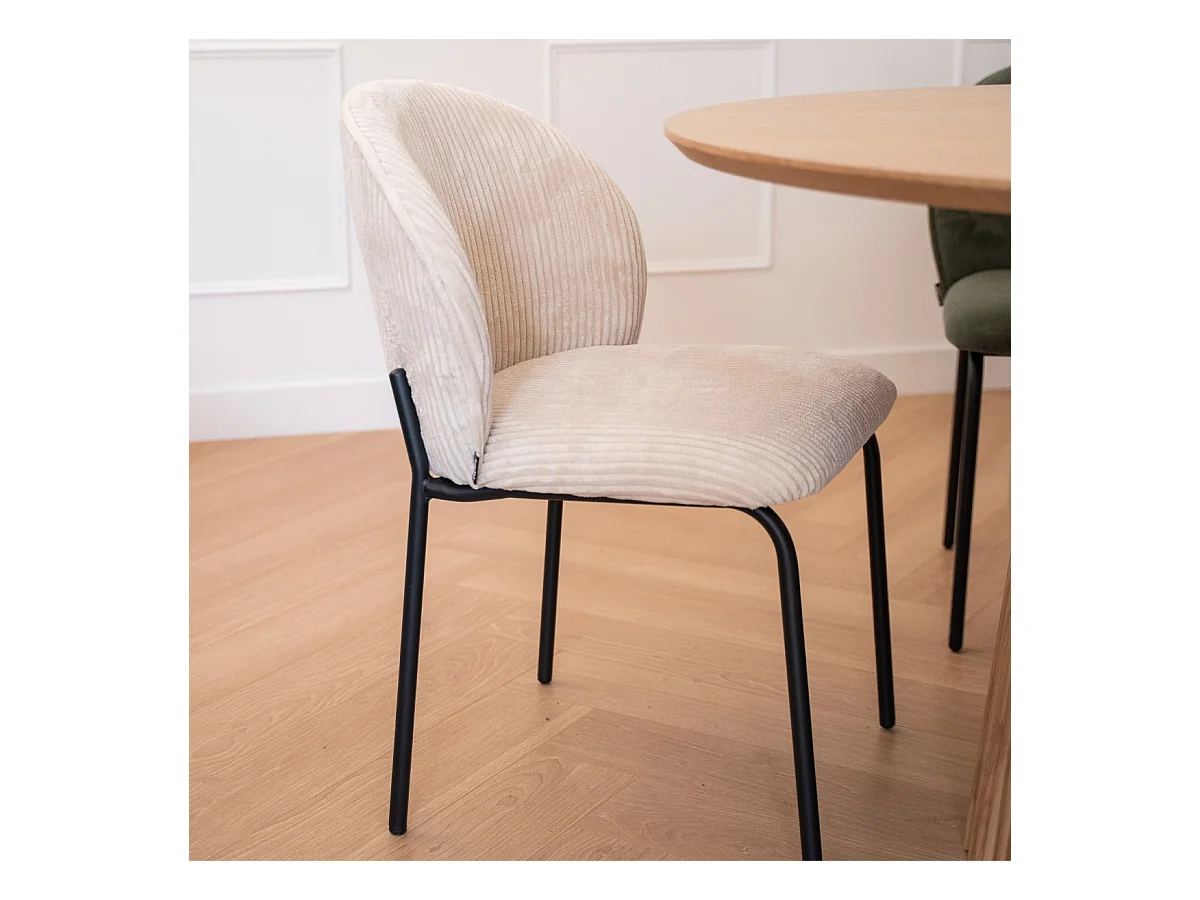 Lot de 2 chaises de salle à manger en velours côtelé beige, piètement en métal noir - Noé