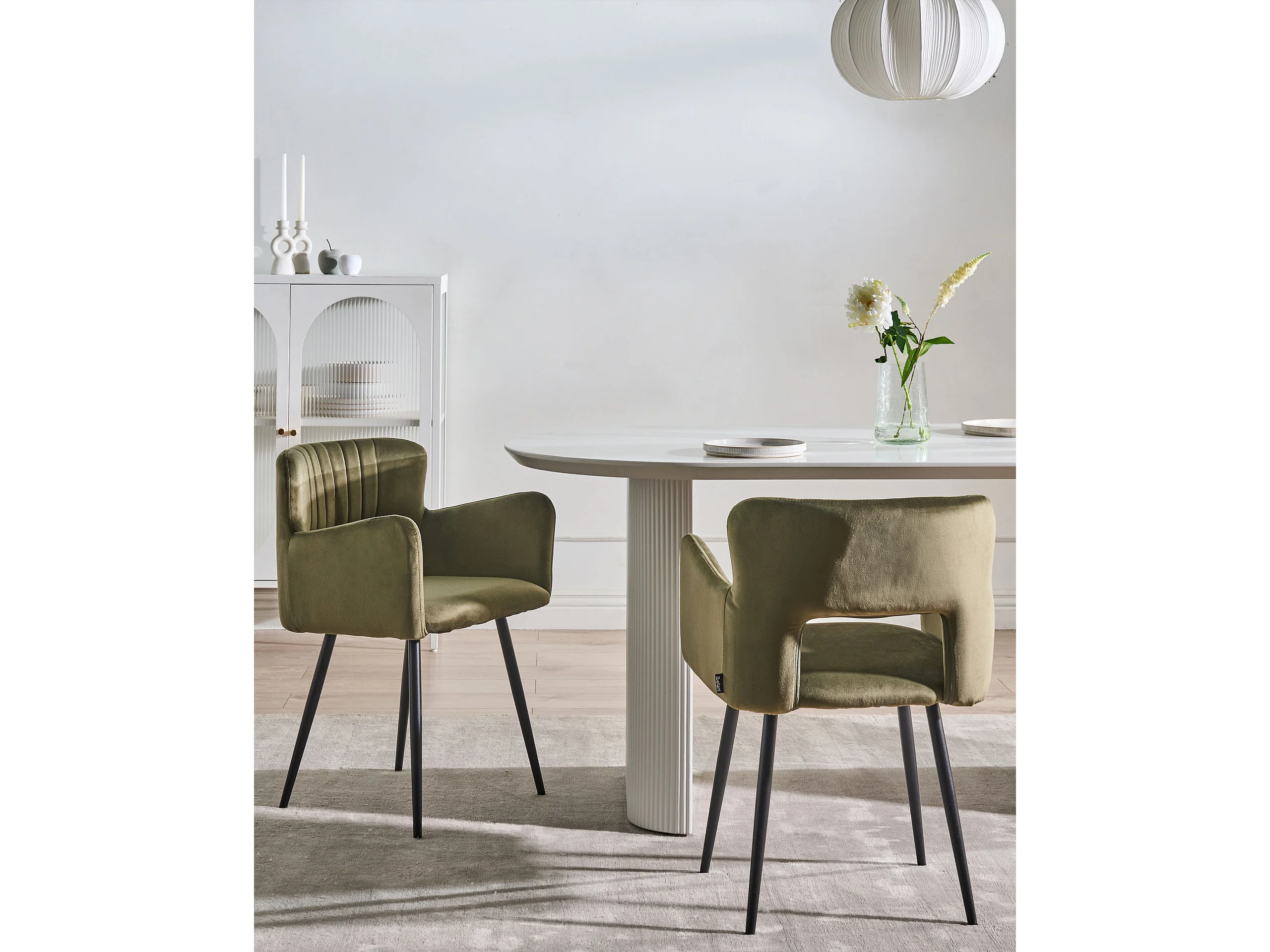 Lot de 2 chaises de salle à manger SANILAC Velours Vert olive