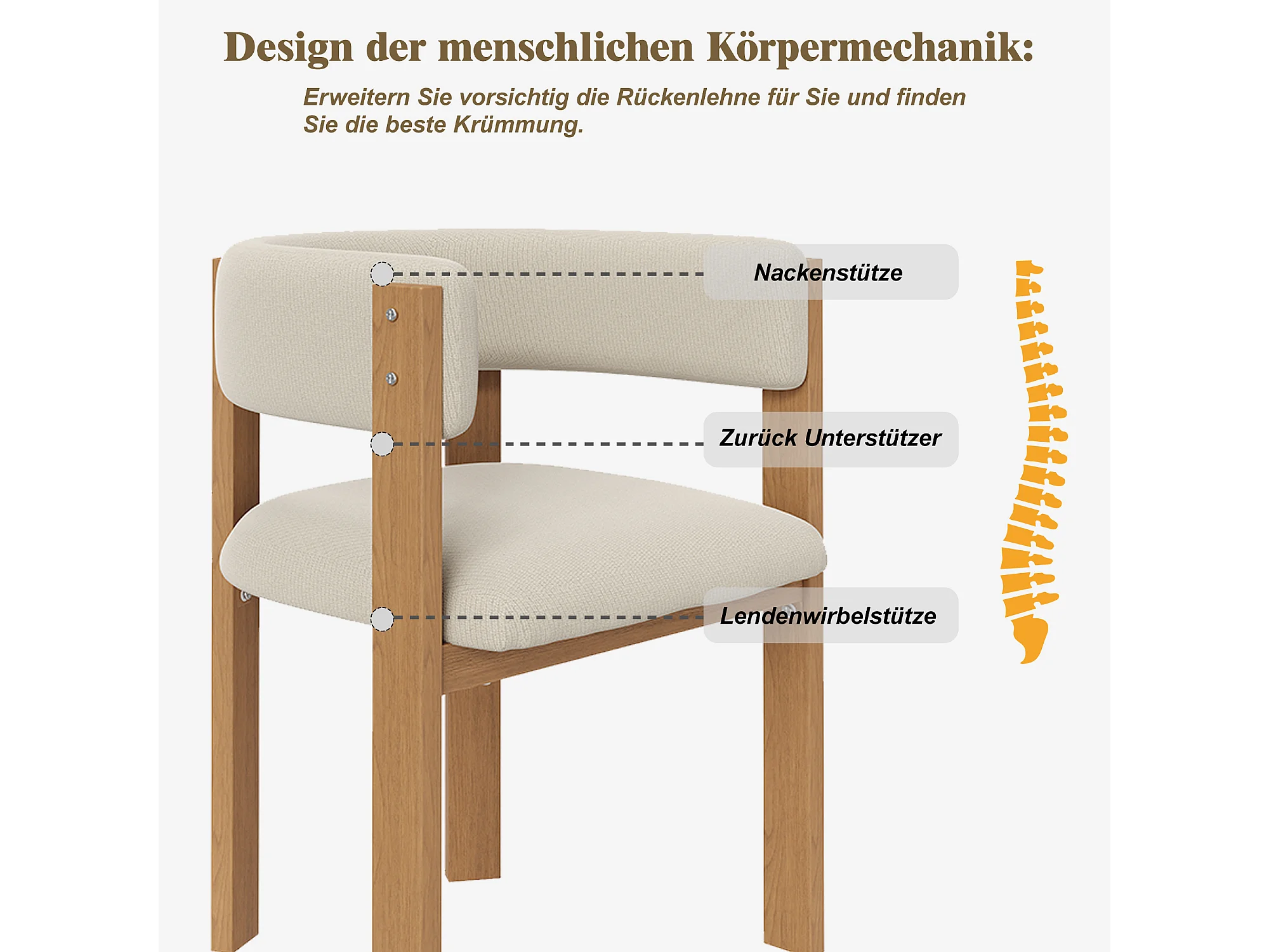Lot de 2 Chaises de salle à manger ergonomique - 54.5 x 44 x 72.5 cm - avec rembourrage + pieds en fer - Flanelle - beige + naturel