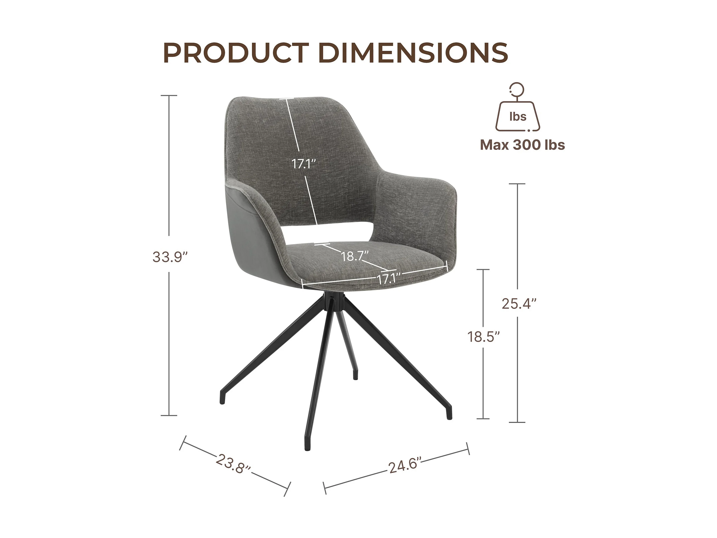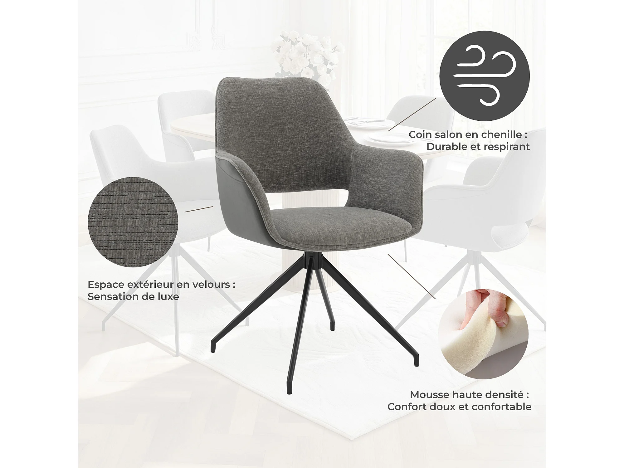 Lot de 2 Chaises de Salle à Manger, Fauteuil Pivotant à 360 degrés, Chaise de Cuisine Coussinets de Pied Réglables Gris