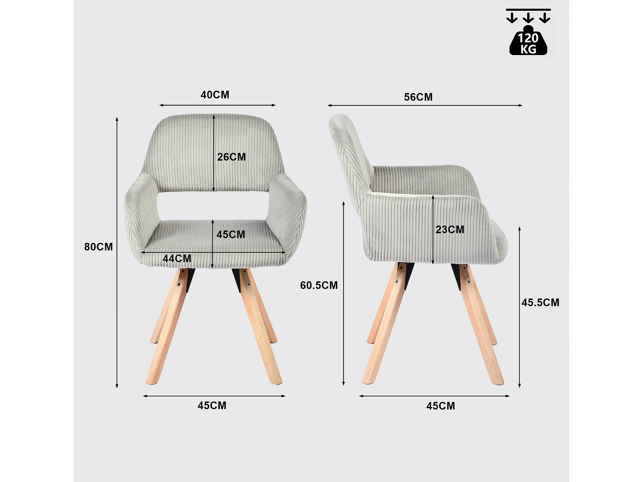 Lot de 2 chaises de salle à manger fauteuils en velours côtelé pied en bois de hêtre style scandinave,CROMWELL