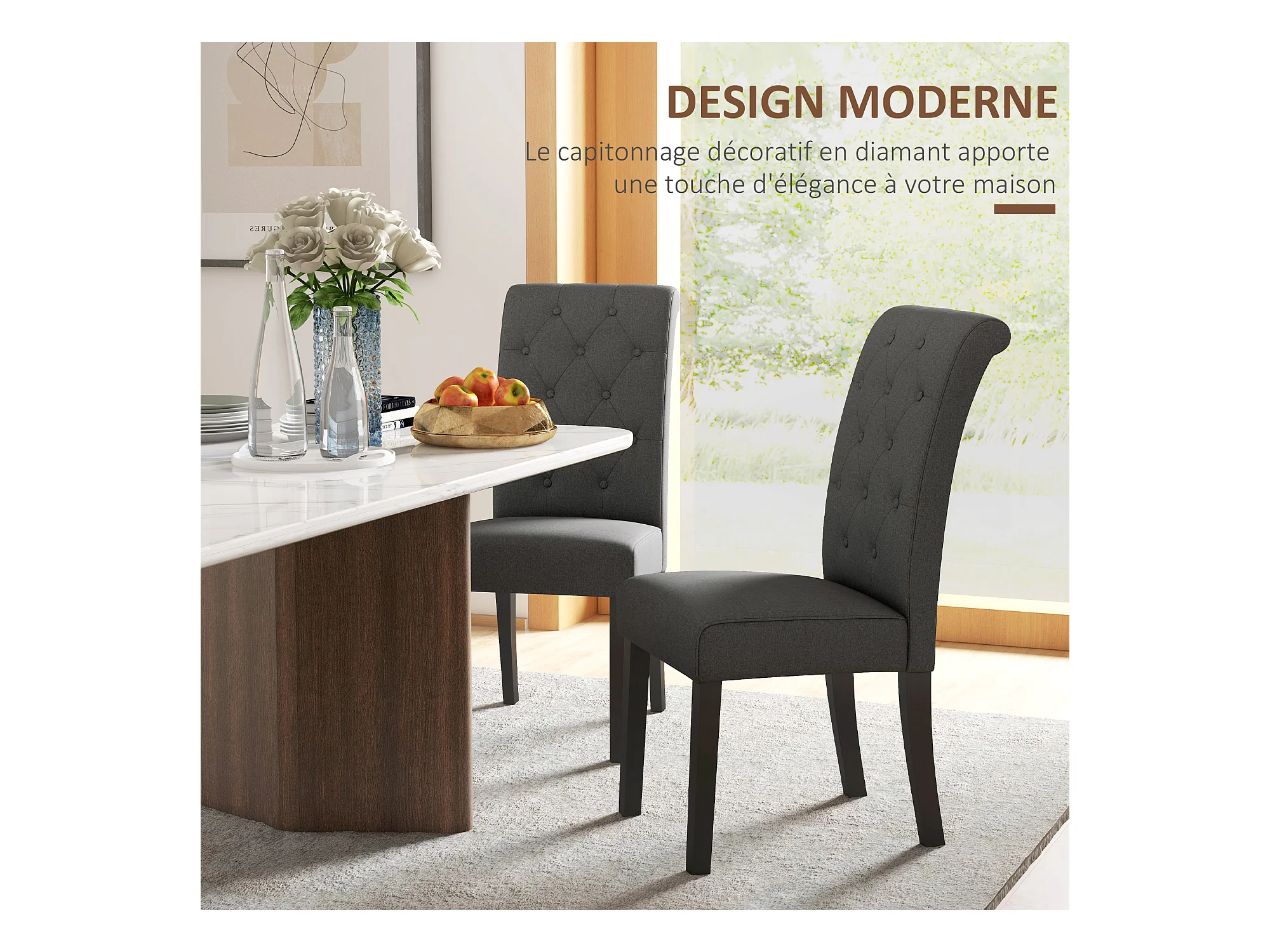 Lot de 2 chaises de salle à manger grand confort pieds en bois lin 47 x 61 x 101 cm anthracite