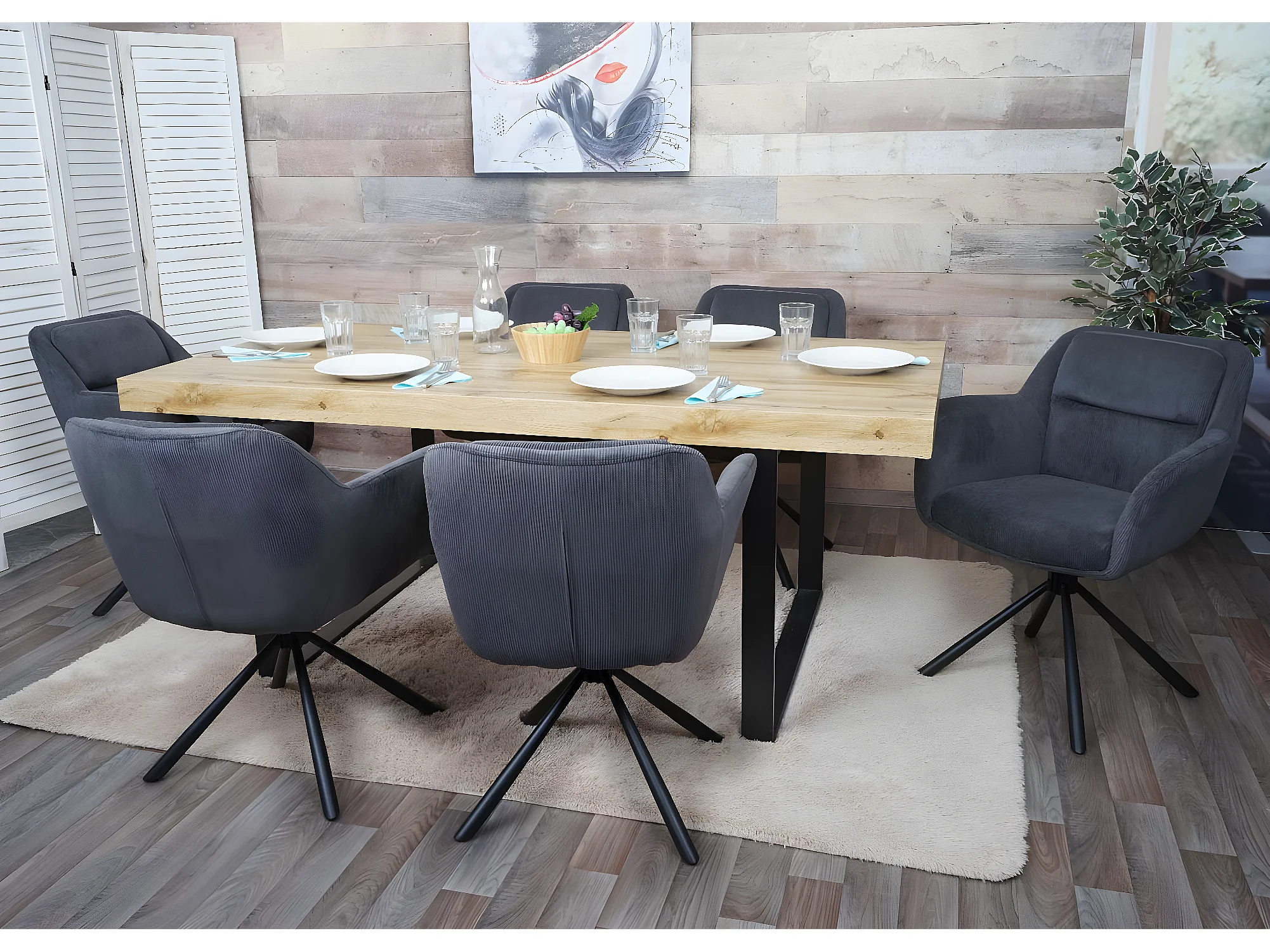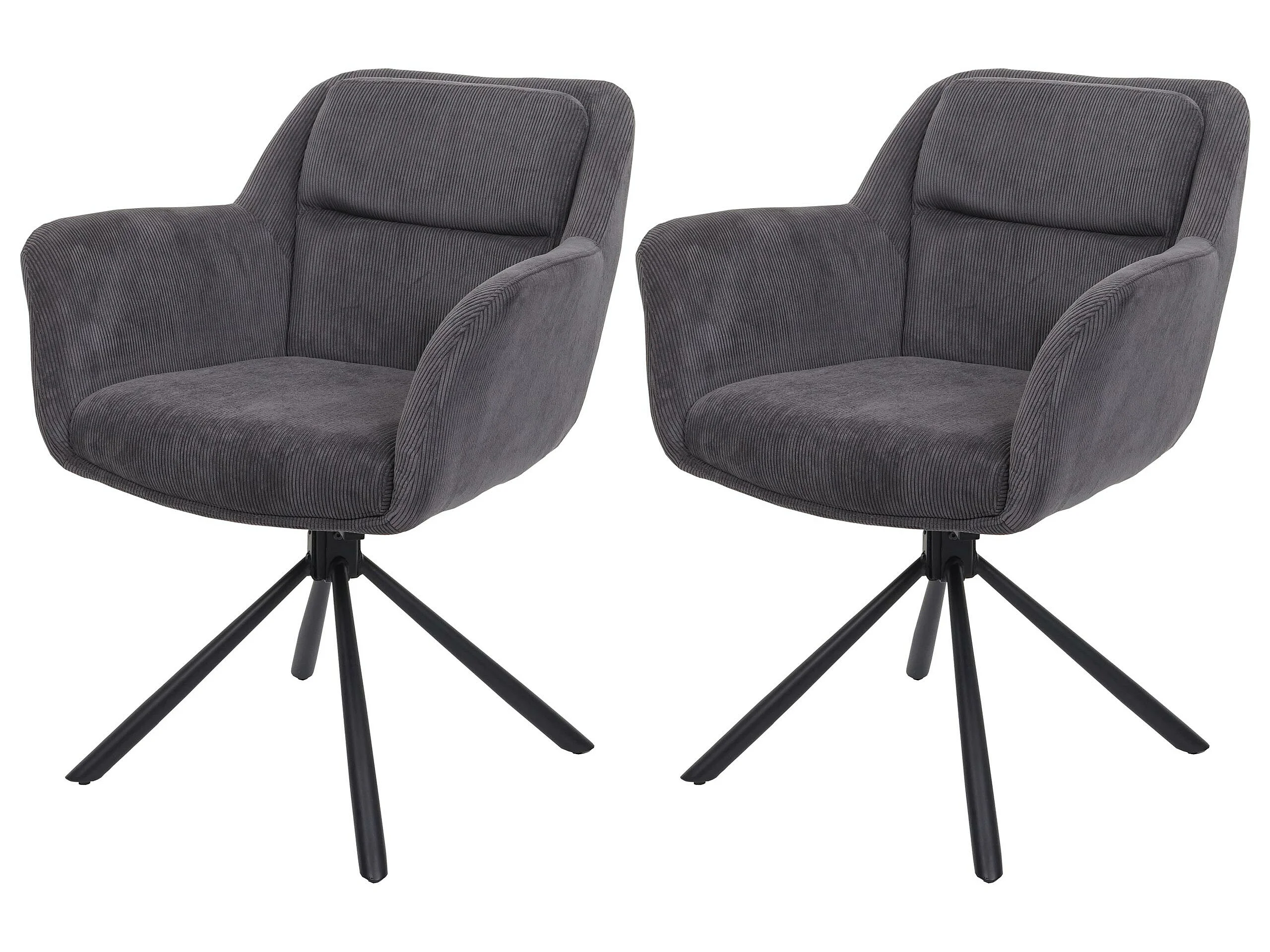 Lot de 2 chaises de salle à manger HWC-K33 - chaise de cuisine - pivotante Auto-Position - tissu/textile - gris corde