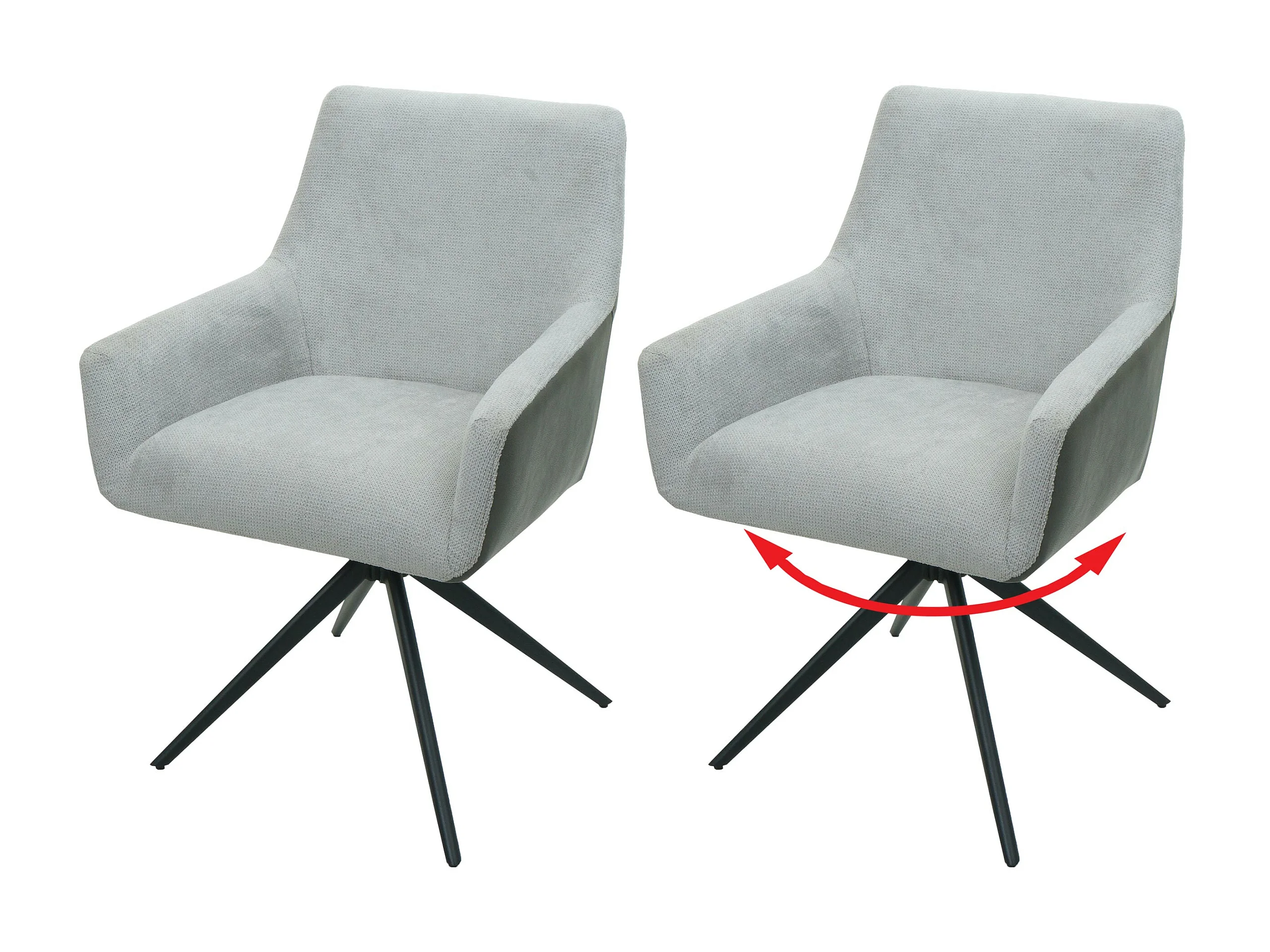 Lot de 2 chaises de salle à manger HWC-L91, chaise de cuisine accoudoir pivotant Auto-Position tissu/textile ~ gris clair sim