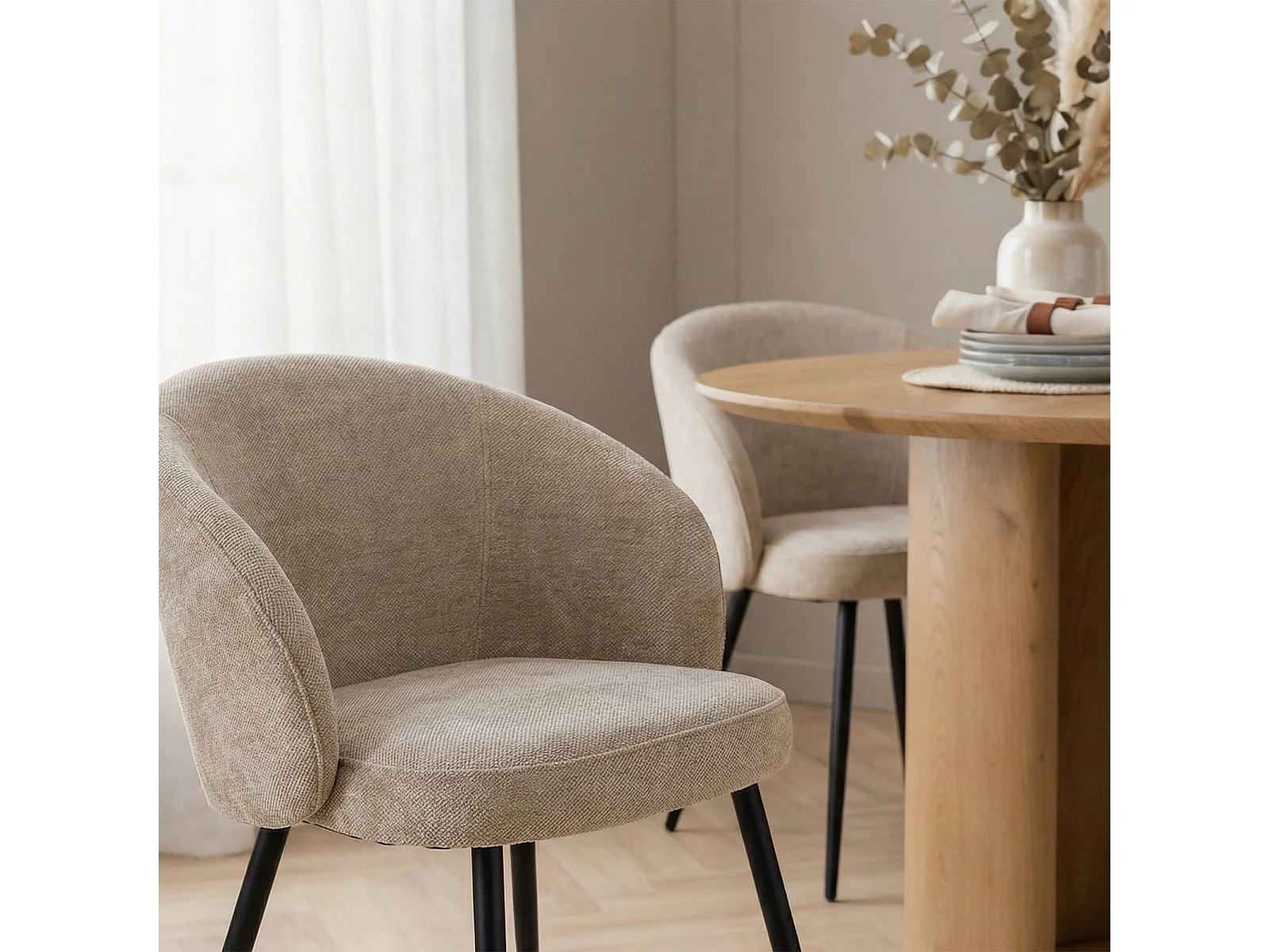 Lot de 2 Chaises de Salle à Manger KURSI en Tissu Beige au Design Rétro-Chic, Assise Rembourrée et Dossier Enveloppant