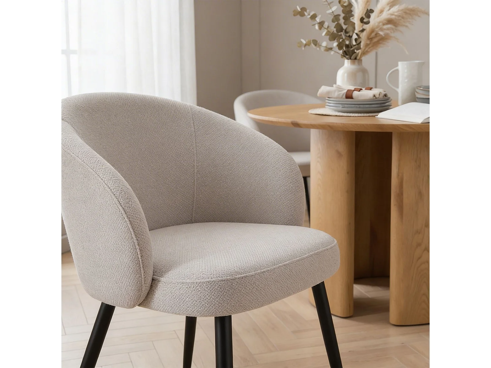 Lot de 2 Chaises de Salle à Manger KURSI en Tissu Gris au Design Rétro-Chic, Assise Rembourrée et Dossier Enveloppant