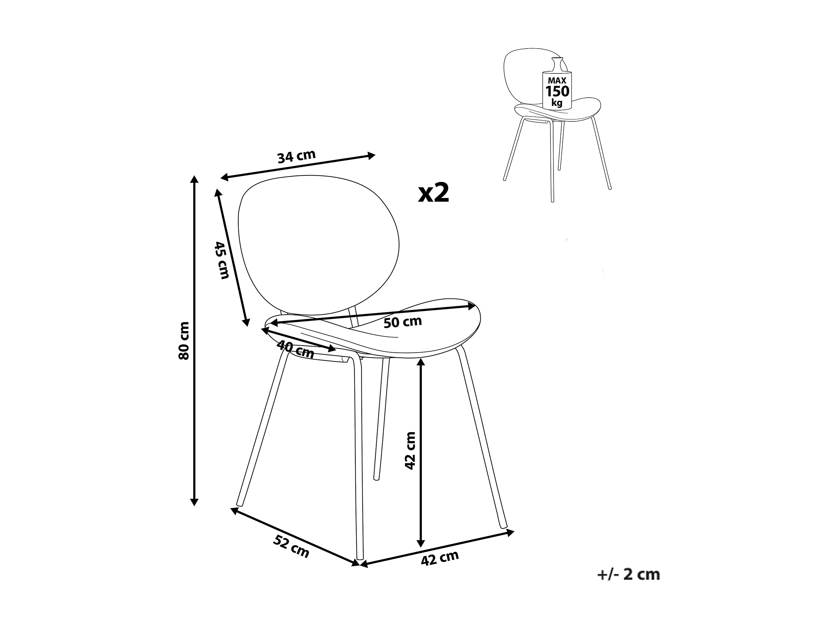 Lot de 2 chaises de salle à manger LUANA Bouclé Vert foncé