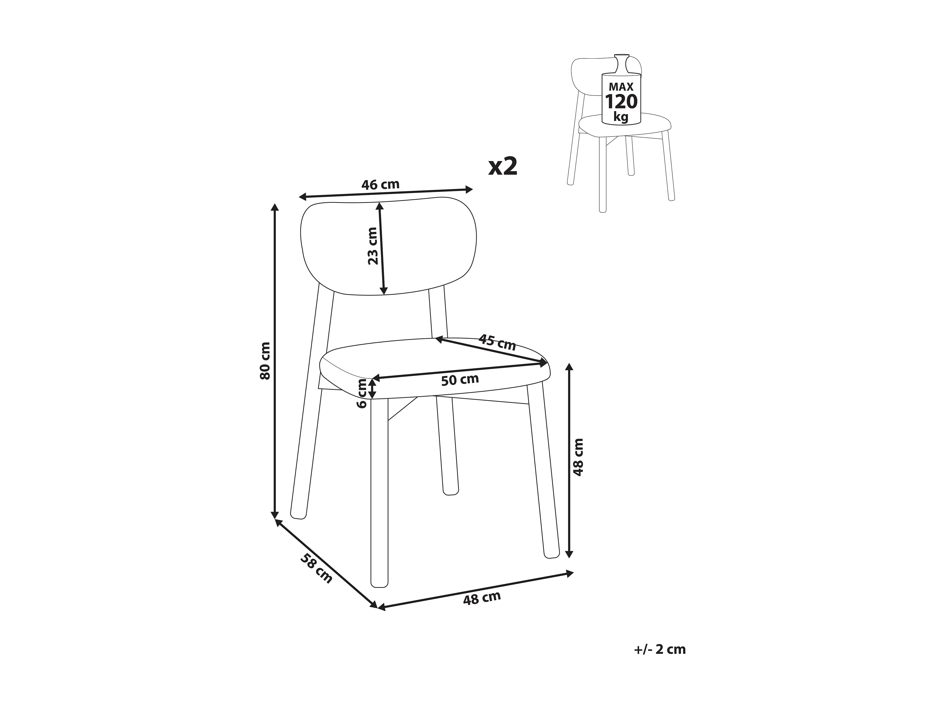 Lot de 2 chaises de salle à manger MILLS Bouclé Marron foncé/beige