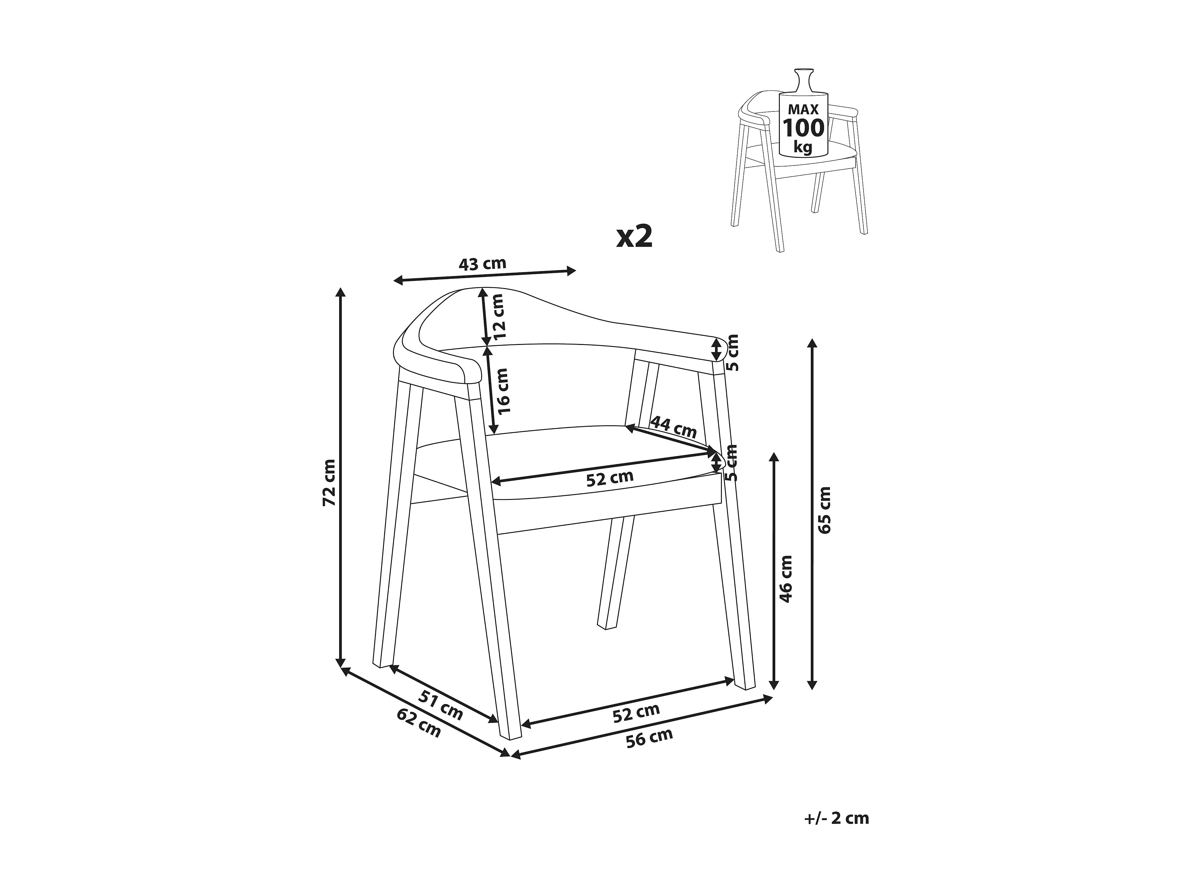Lot de 2 chaises de salle à manger ONECO Bois Marron foncé