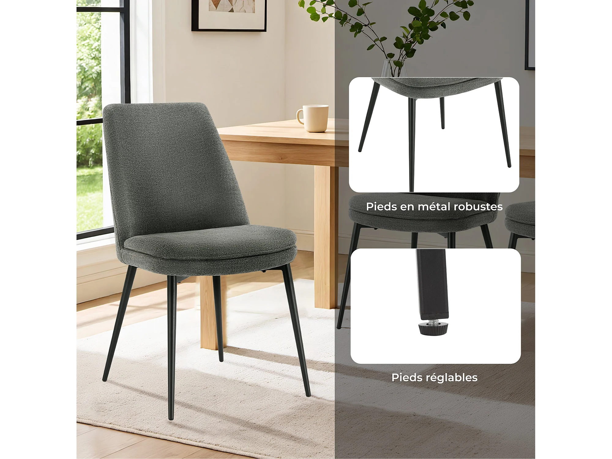 Lot de 2 Chaises de Salle à Manger, Pieds en Métal, Avec Dossier,en Chenille Gris foncé