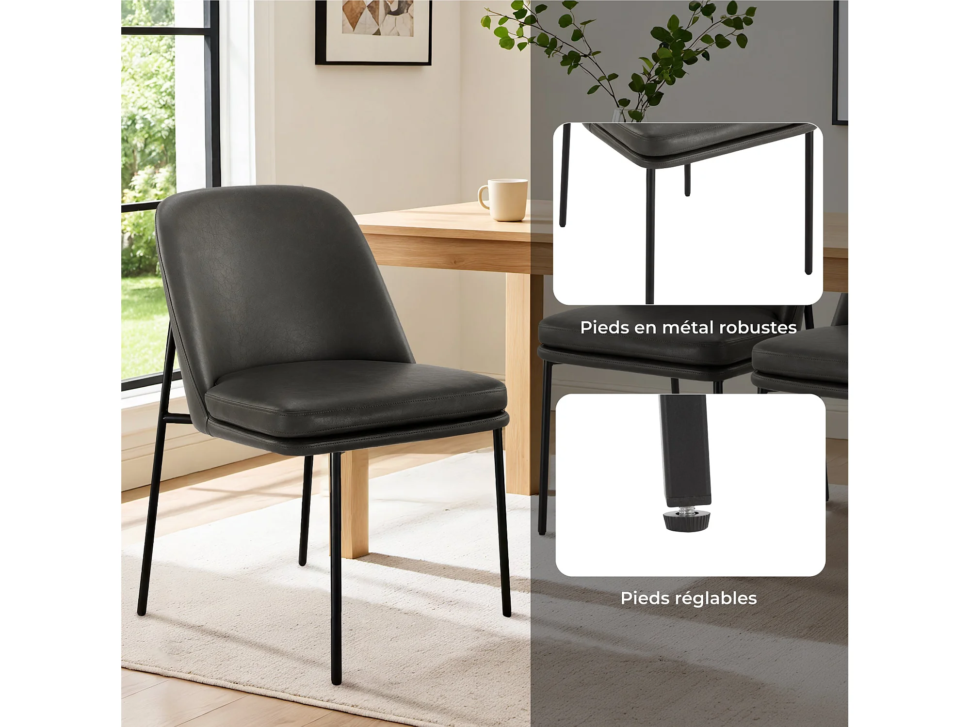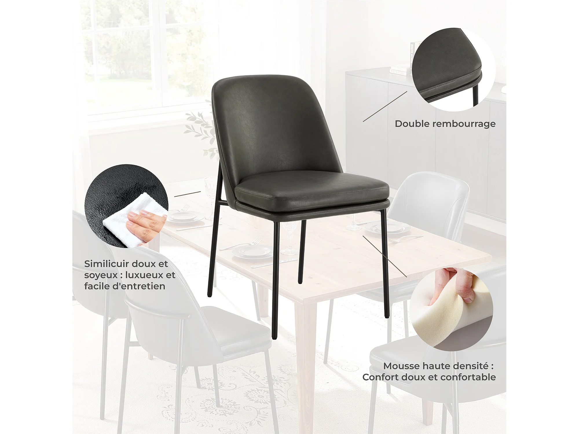 Lot de 2 Chaises de Salle à Manger, Pieds en Métal, Avec Dossier, en PU, Style Moderne Gris foncé