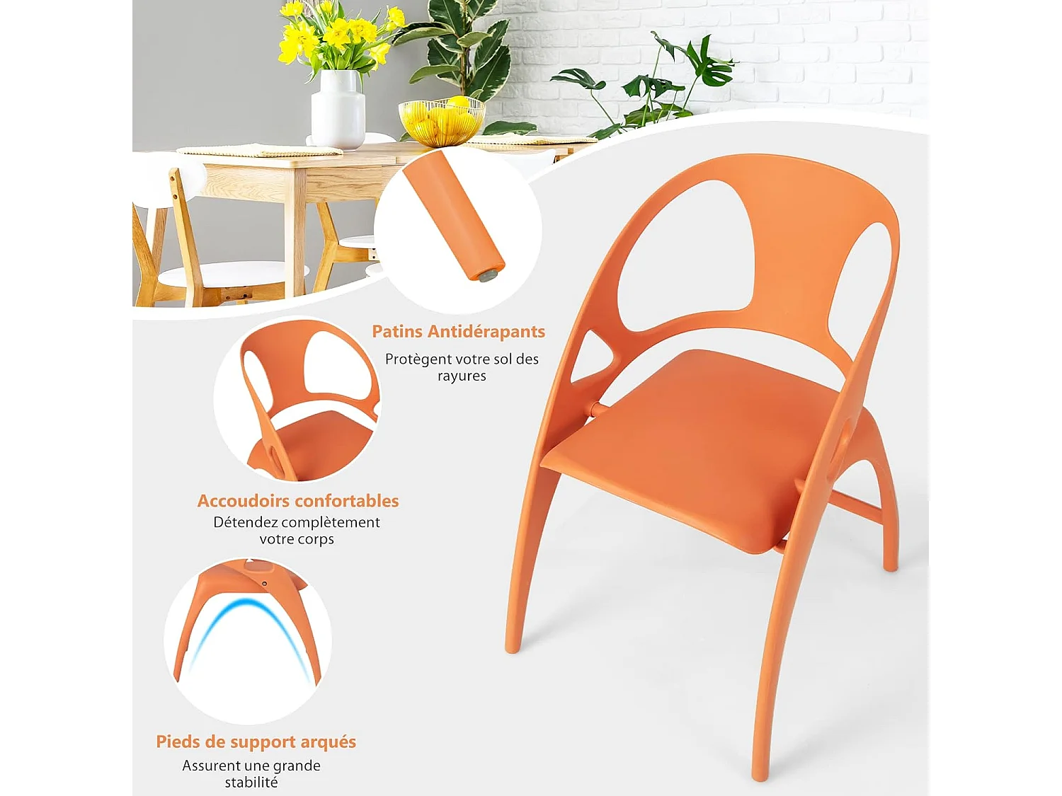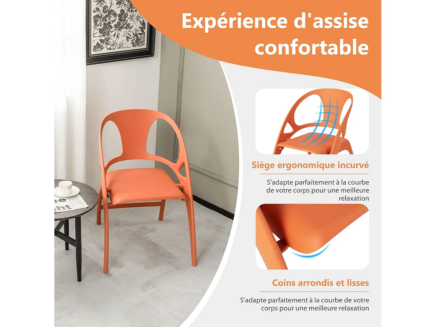Lot de 2 chaises de salle à manger pliable style moderne, orange