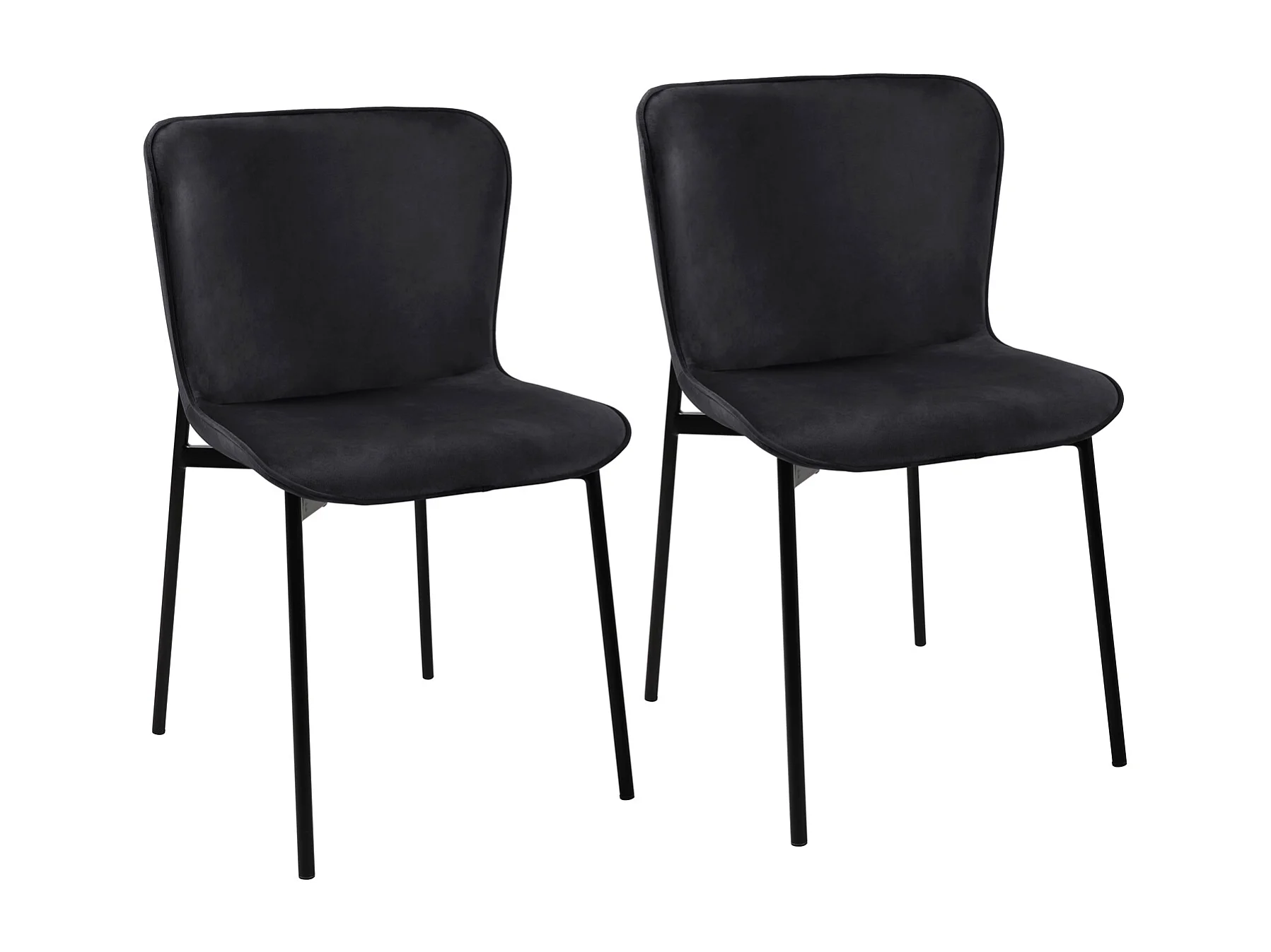 TINTO - Lot de 2 Chaises Velours Noir et Pieds Acier