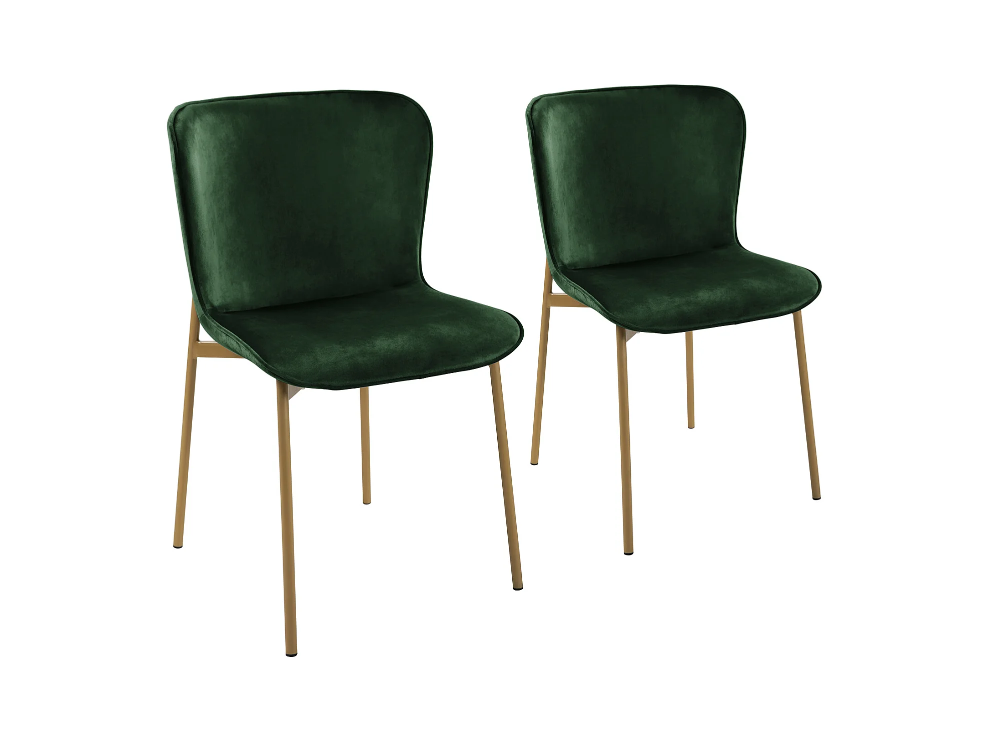 Chaise Lot de 2 rembourrées avec dossier en forme de pétale de pieds en métal doré et de coussins en forme de papillon Vert