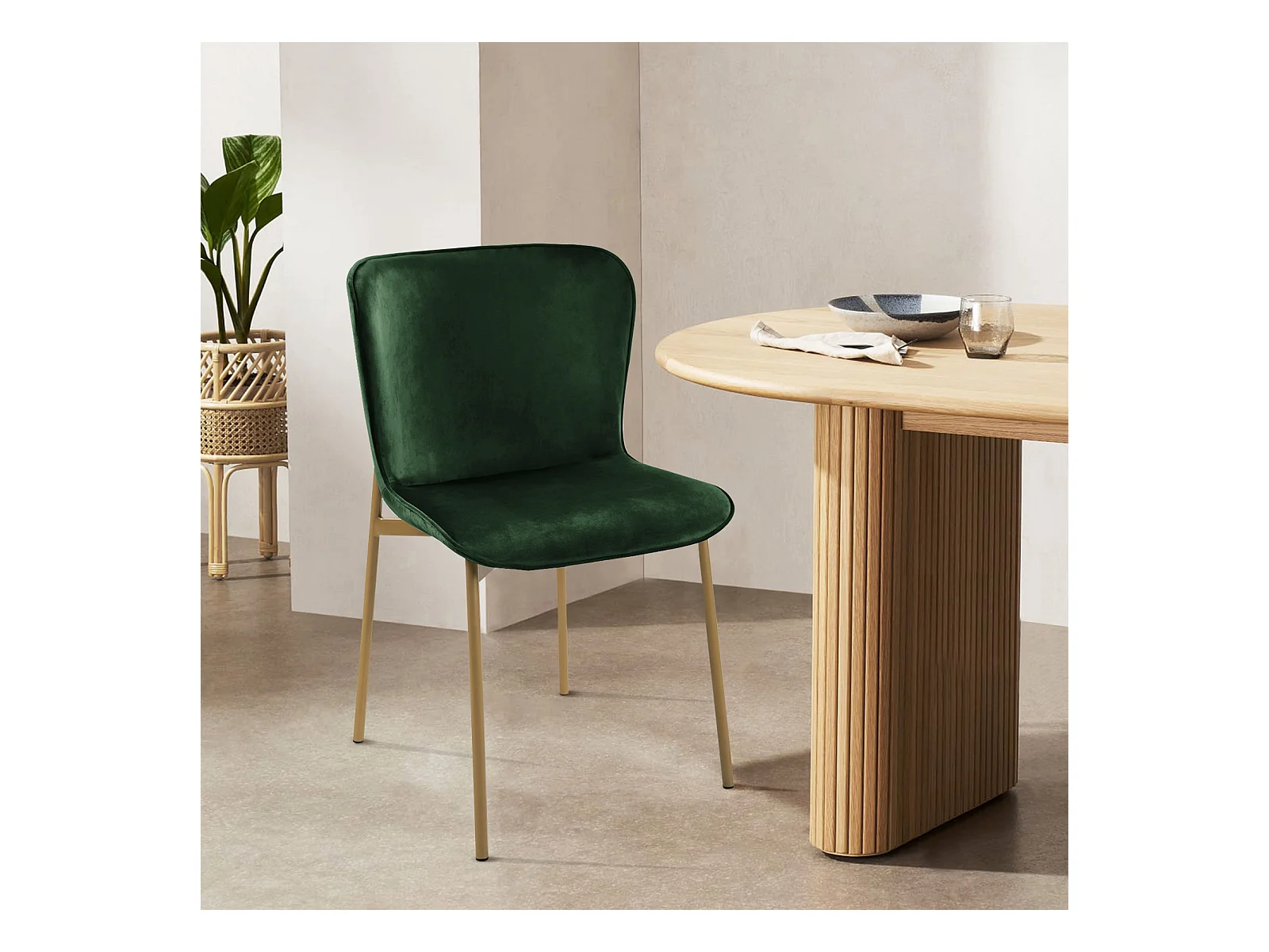 Chaise de salle à manger en velours vert avec pieds en métal noir et doré BOCHICA