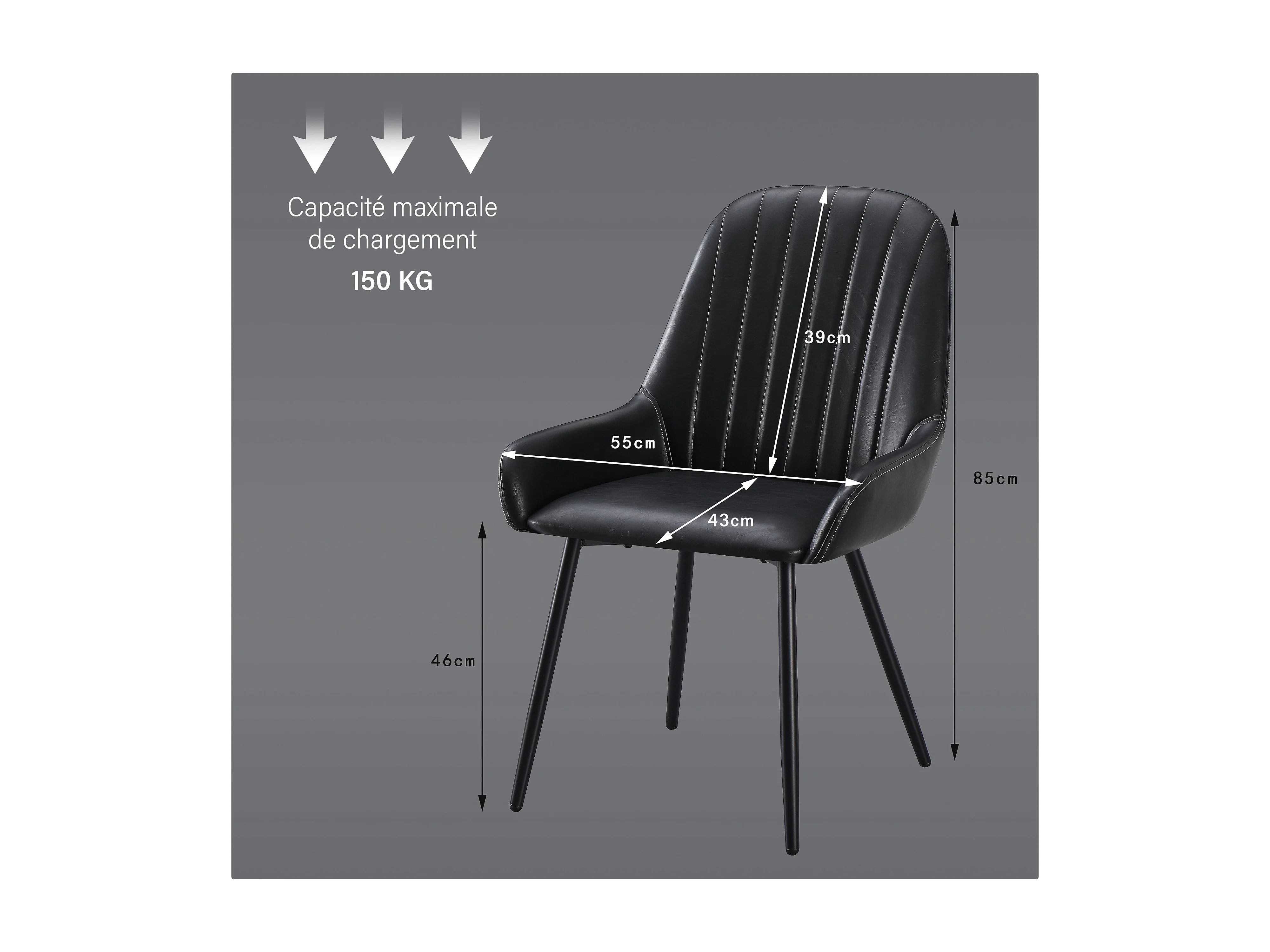 Lot de 2 chaises en similicuir avec accoudoirs et dossier - pieds en métal - noir