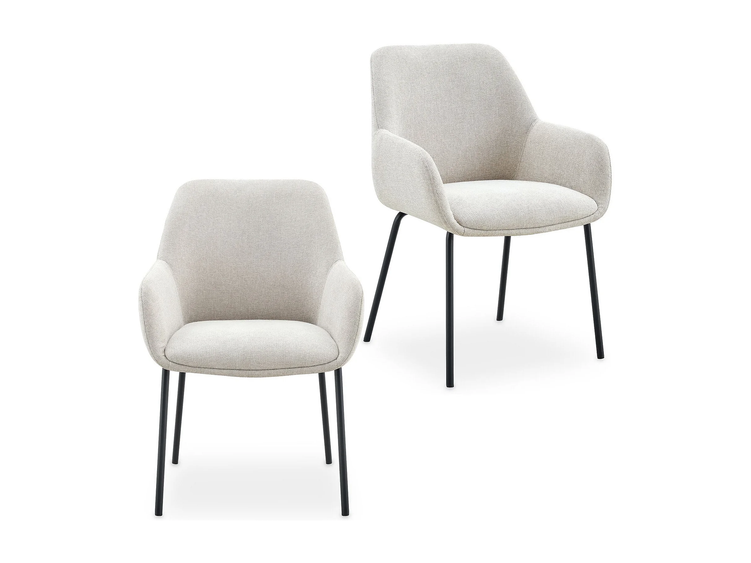 Lot de 2 Chaises de Salle à Manger TURSI en Tissu Beige Avec Accoudoirs, Assise Rembourrée et Dossier Enveloppant, Pieds en Métal