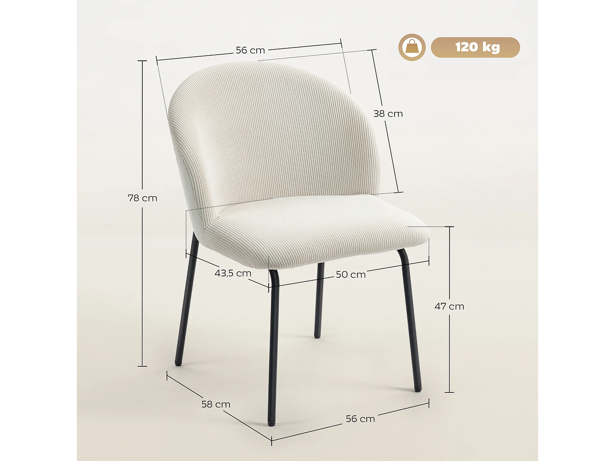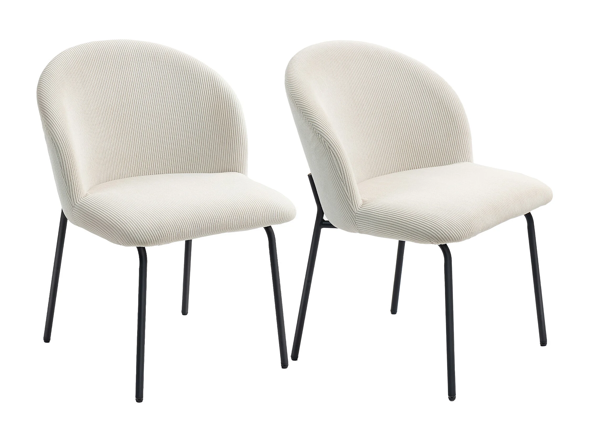 Lot de 2 chaises de salle à manger velours côtelé crème piètement acier noir