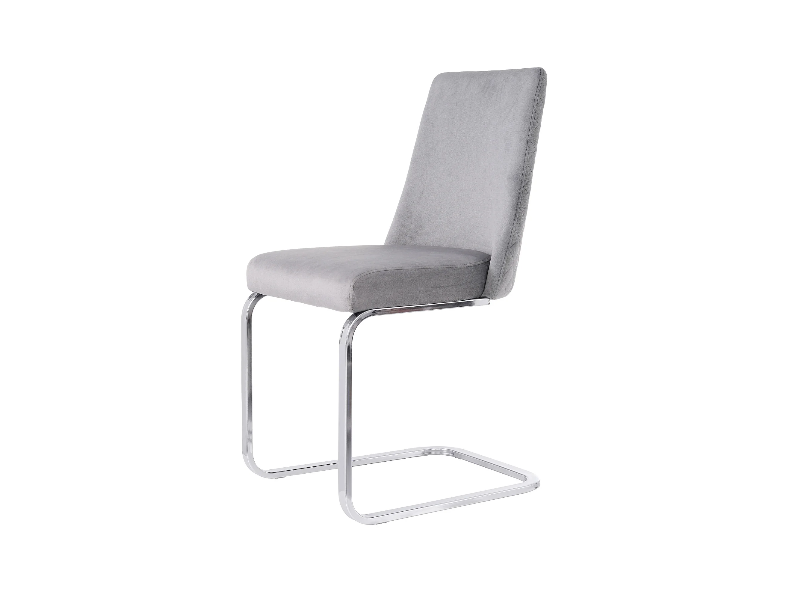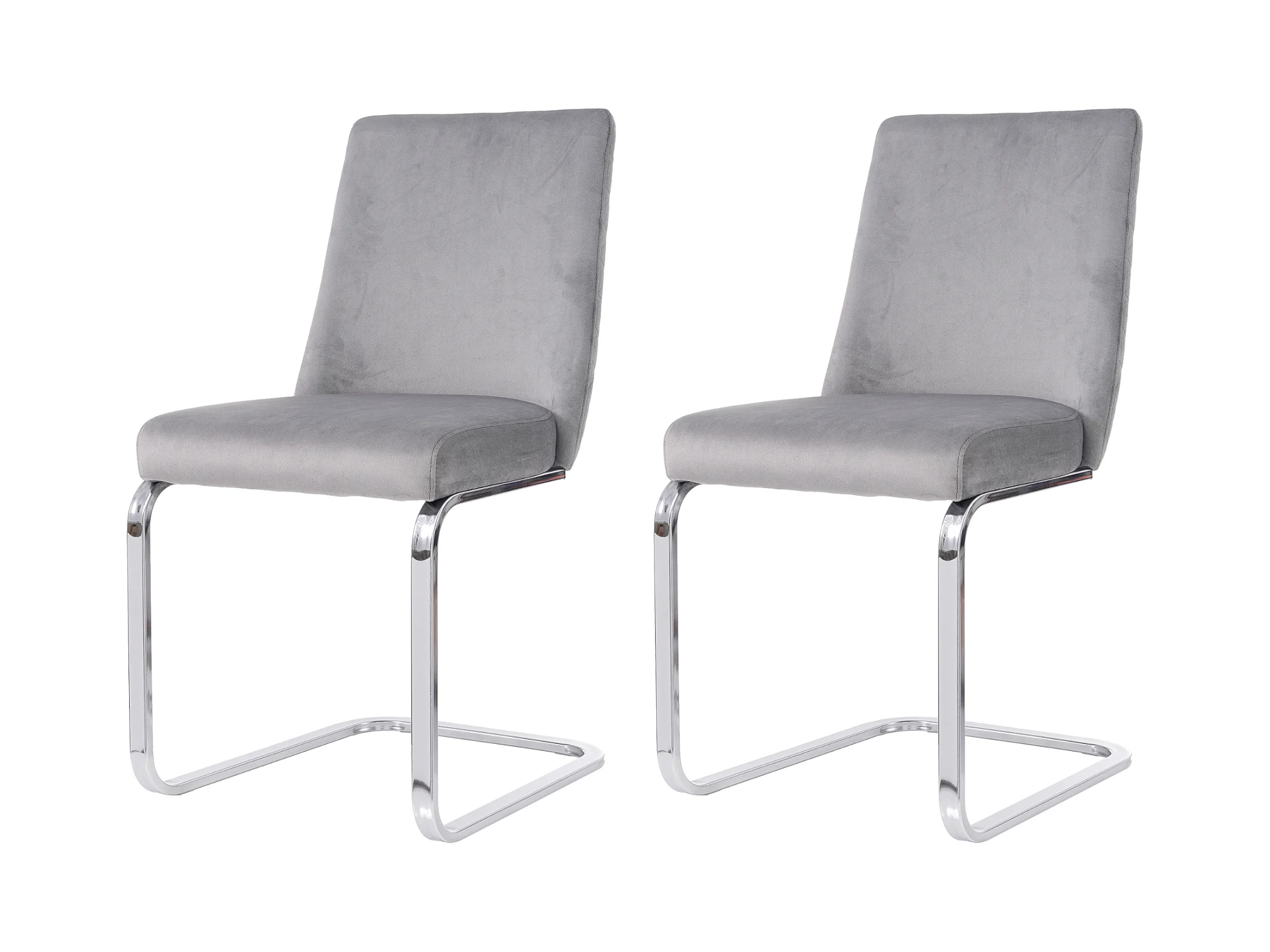 Lot de 2 chaises de salle à manger - velours gris - avec dossier rembourré et pieds en métal argenté