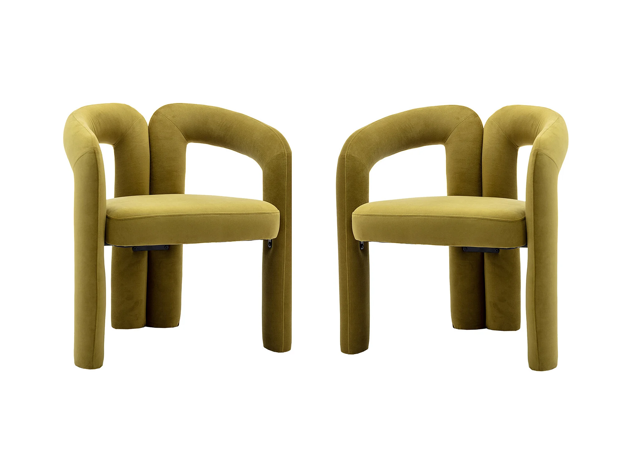 Lot de 2 chaises de salle à manger — velours vert sapin — accoudoirs design à deux arcs - élégant et confortable