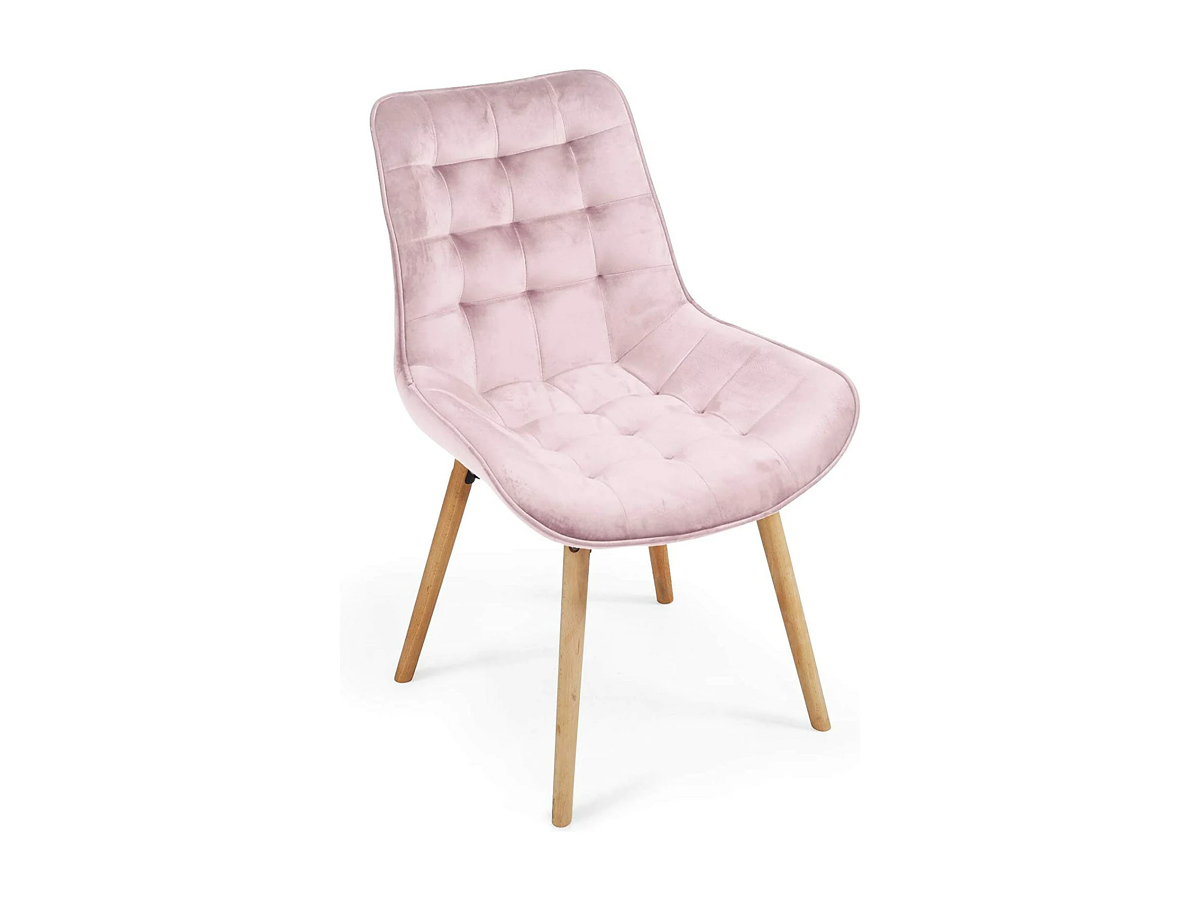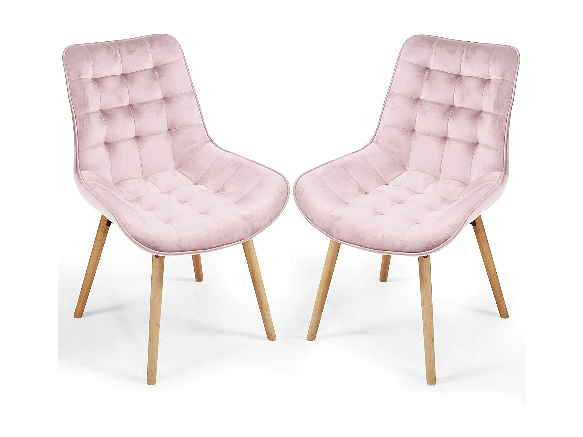 Lot de 2 chaises de salon salle à manger pied en bois et velours rose 01_0000742