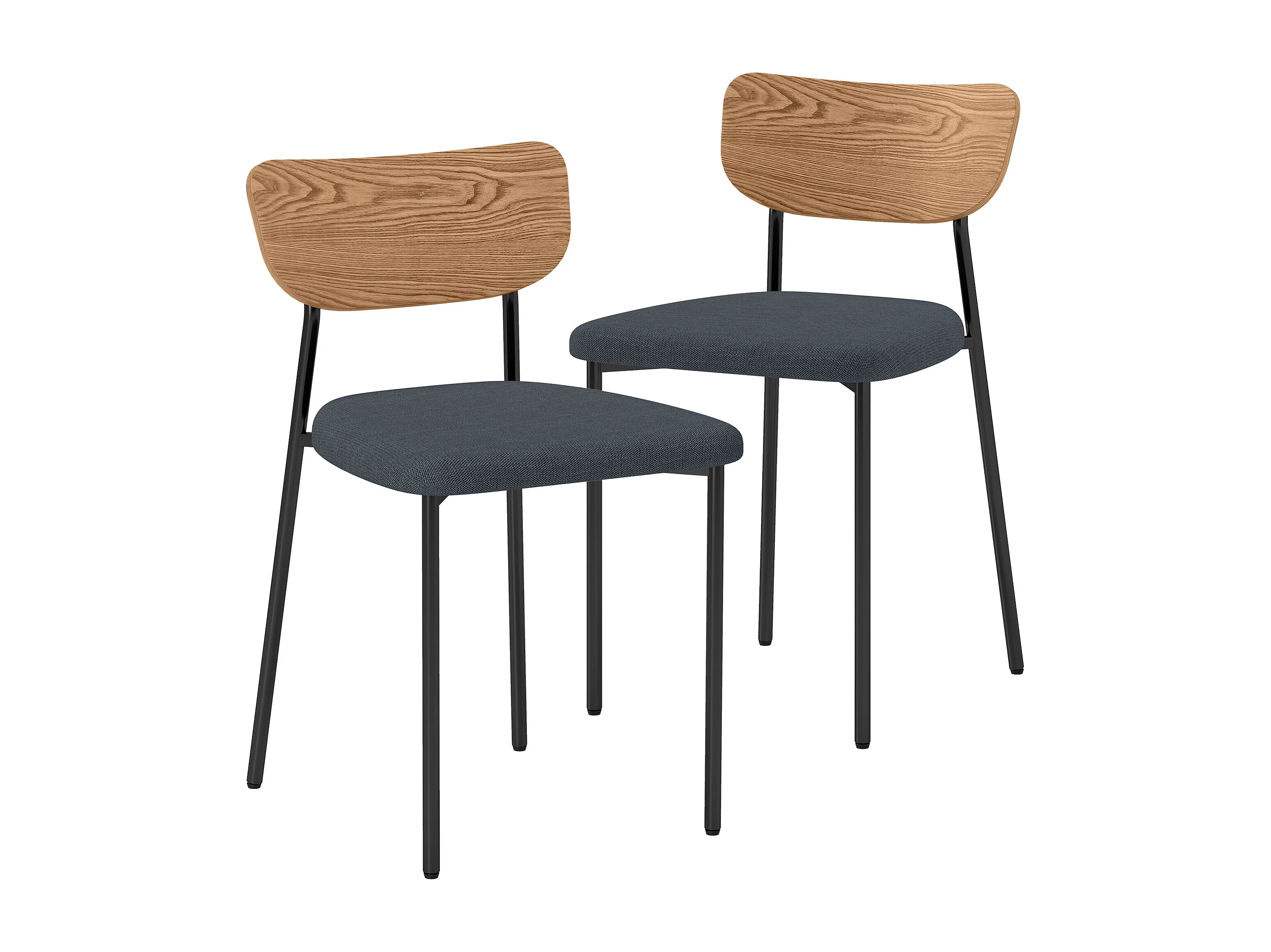 Lot de 2 chaises de salon style néo-rétro assise rembourré tissu gris piètement acier noir dossier effet bois
