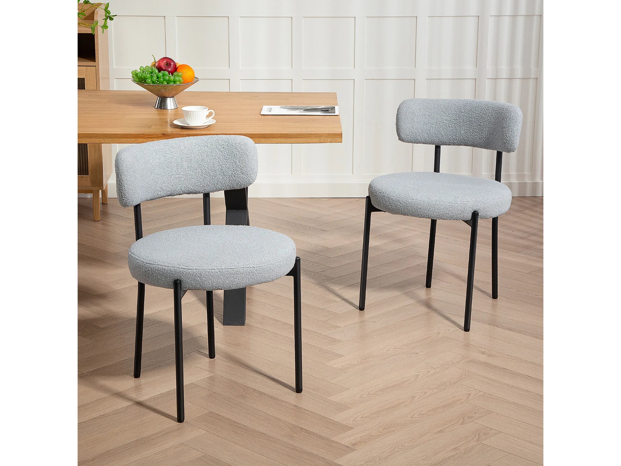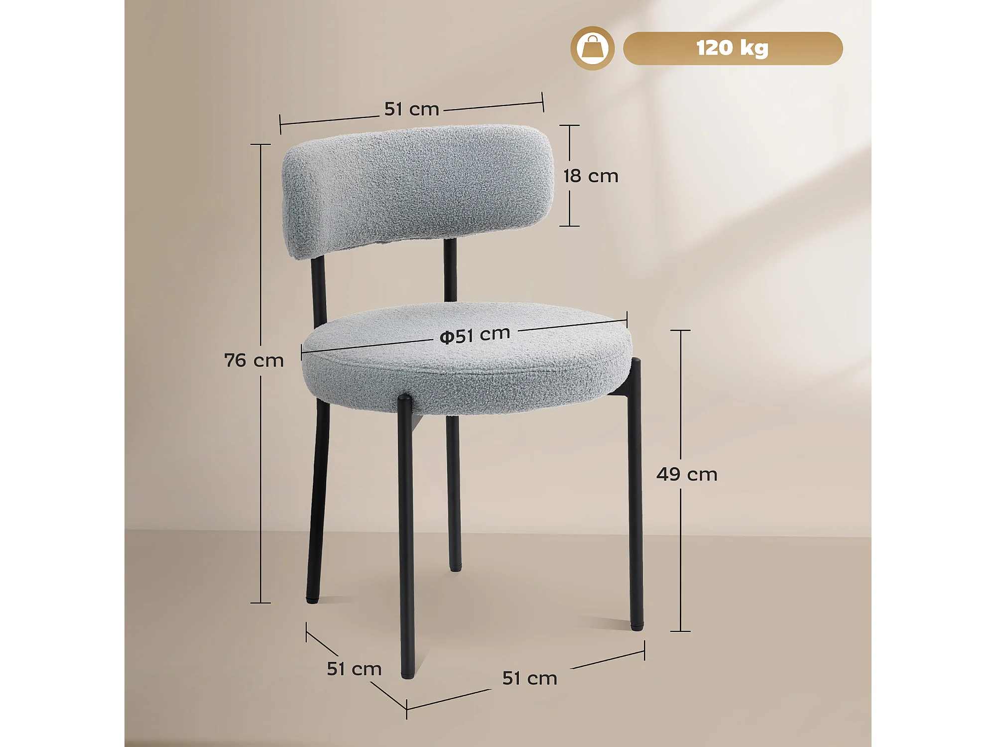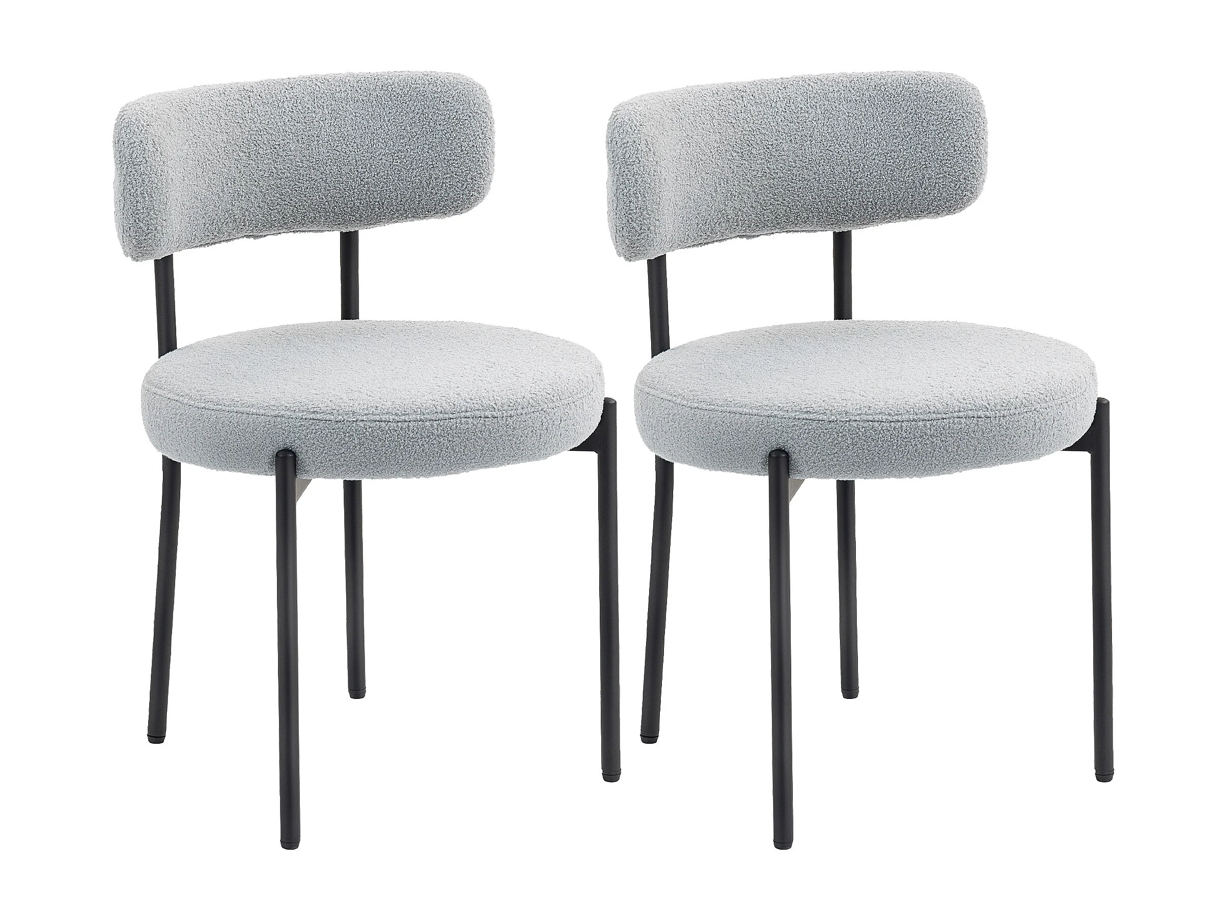 Lot de 2 chaises de salon style néo-rétro - assise ronde, dossier enveloppant - acier noir effet laine bouclée gris