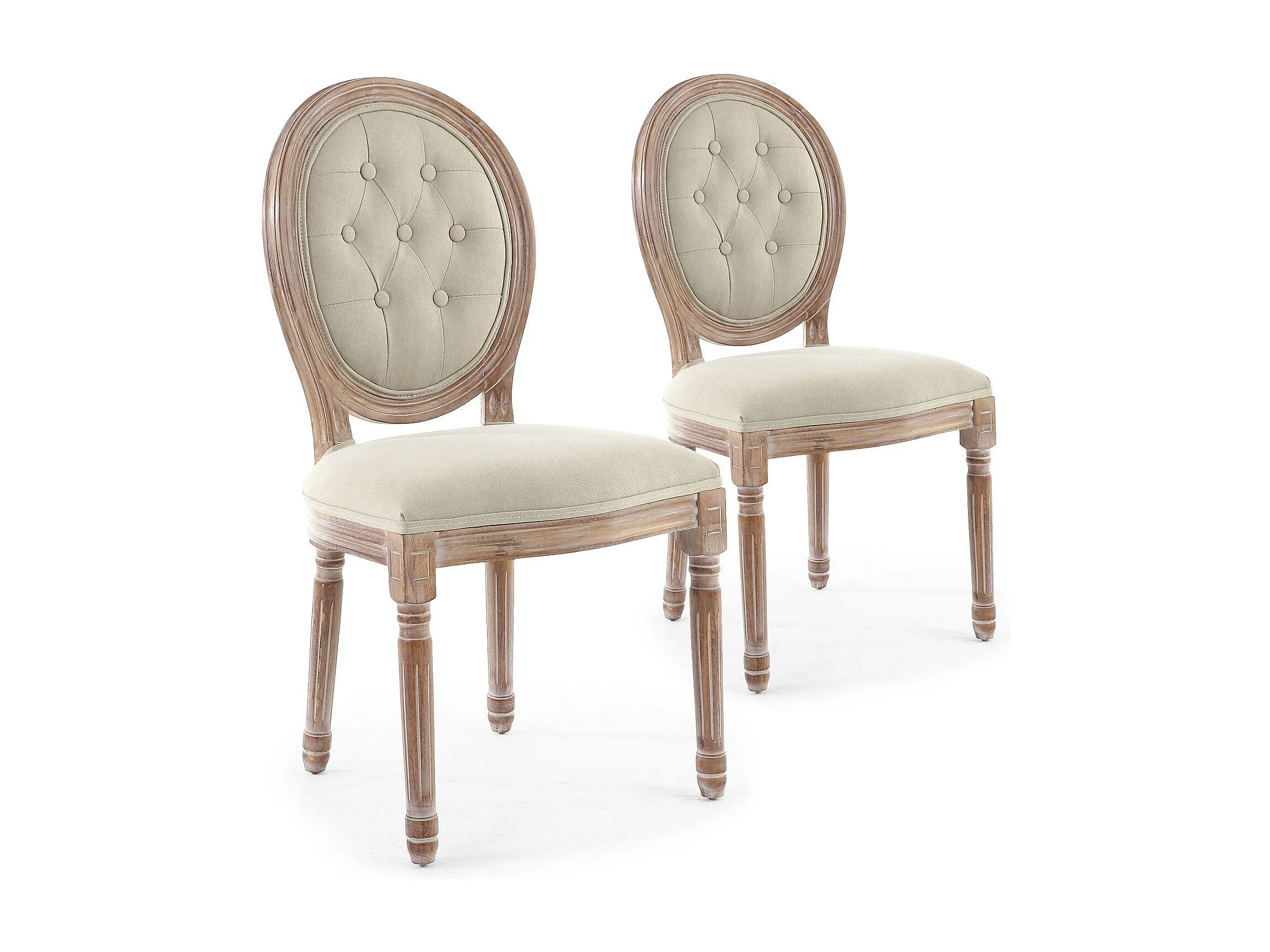 Lot de 2 Chaises Médaillon "Quing" Capitonné Tissu Beige