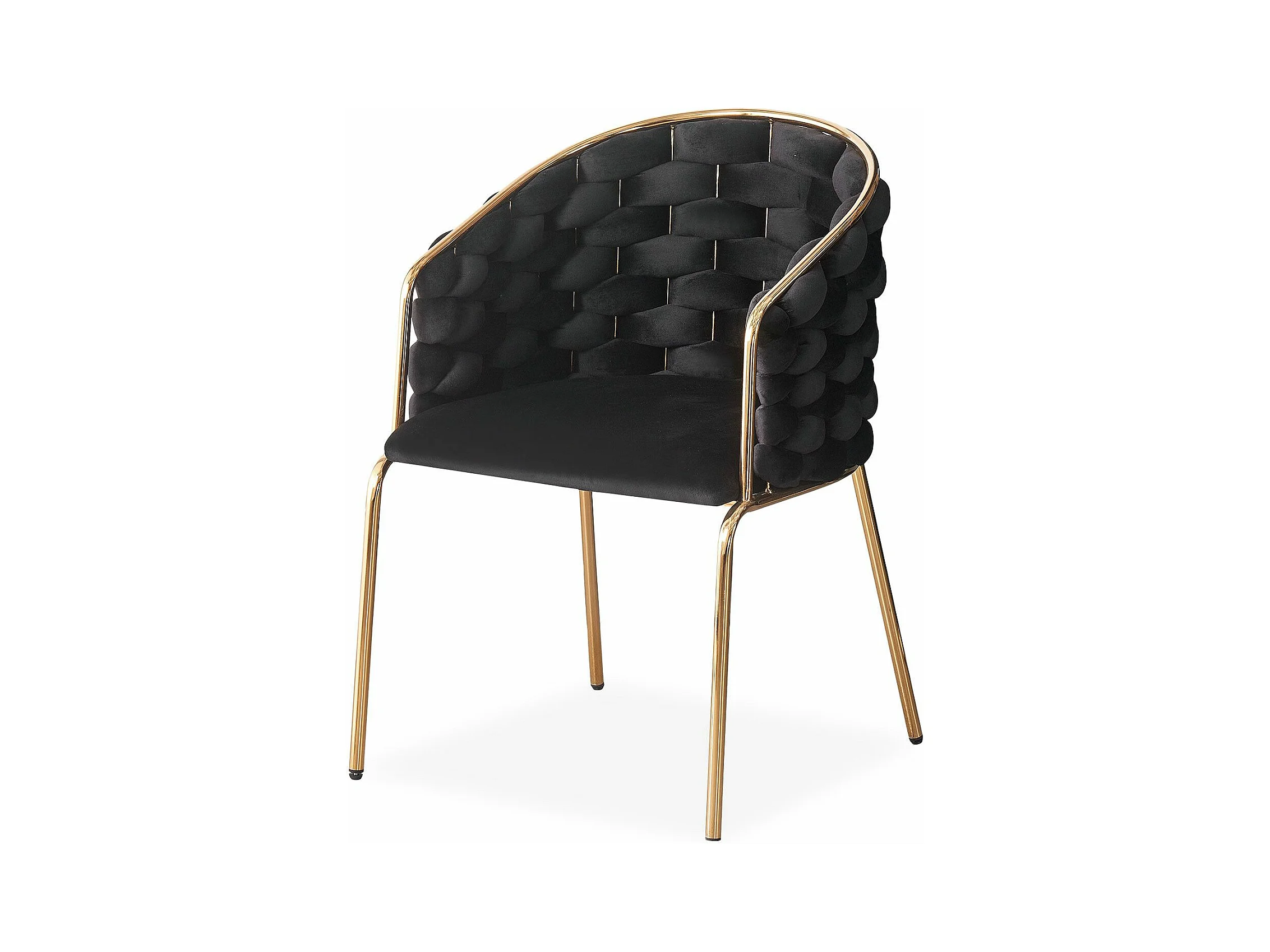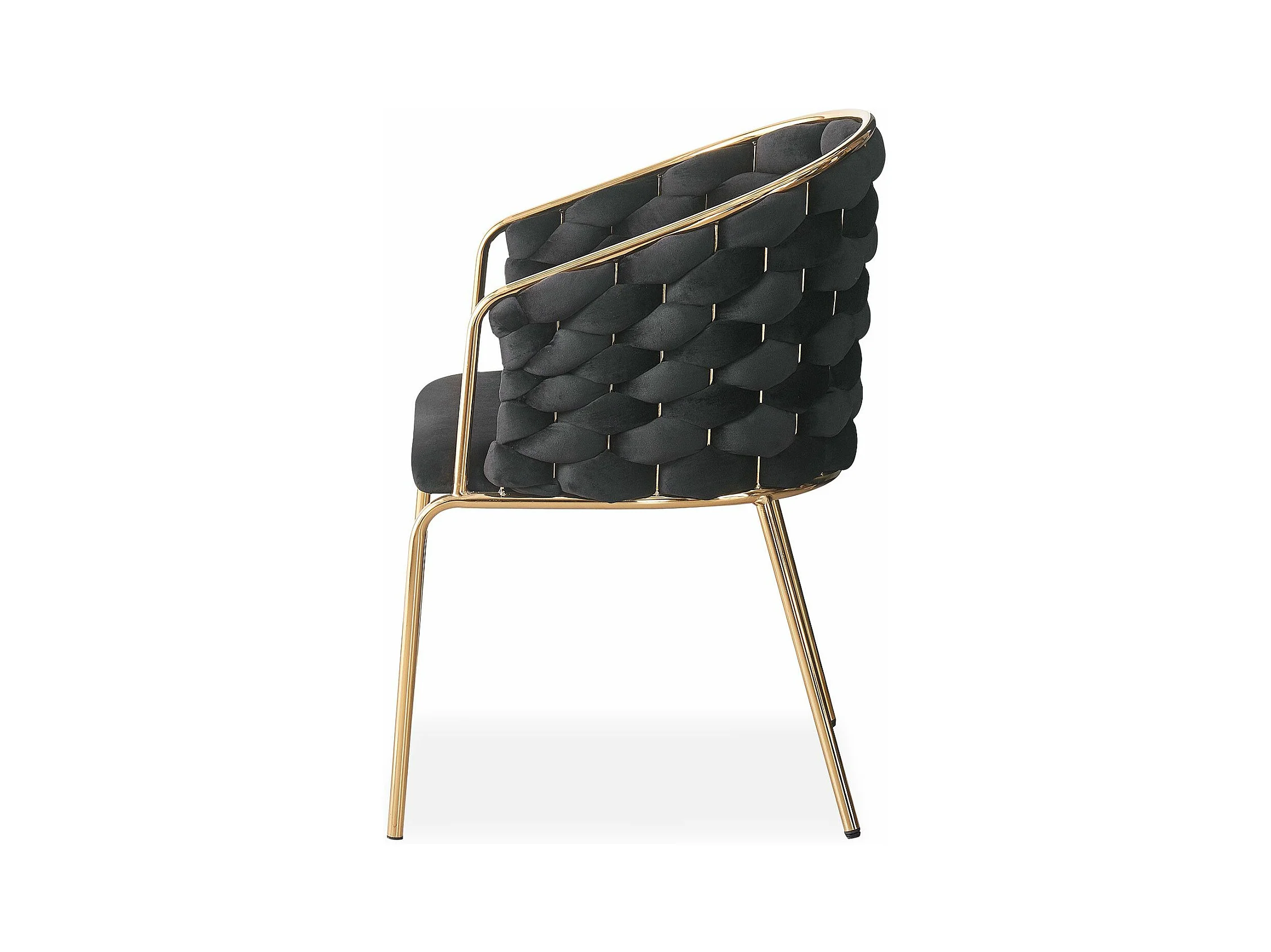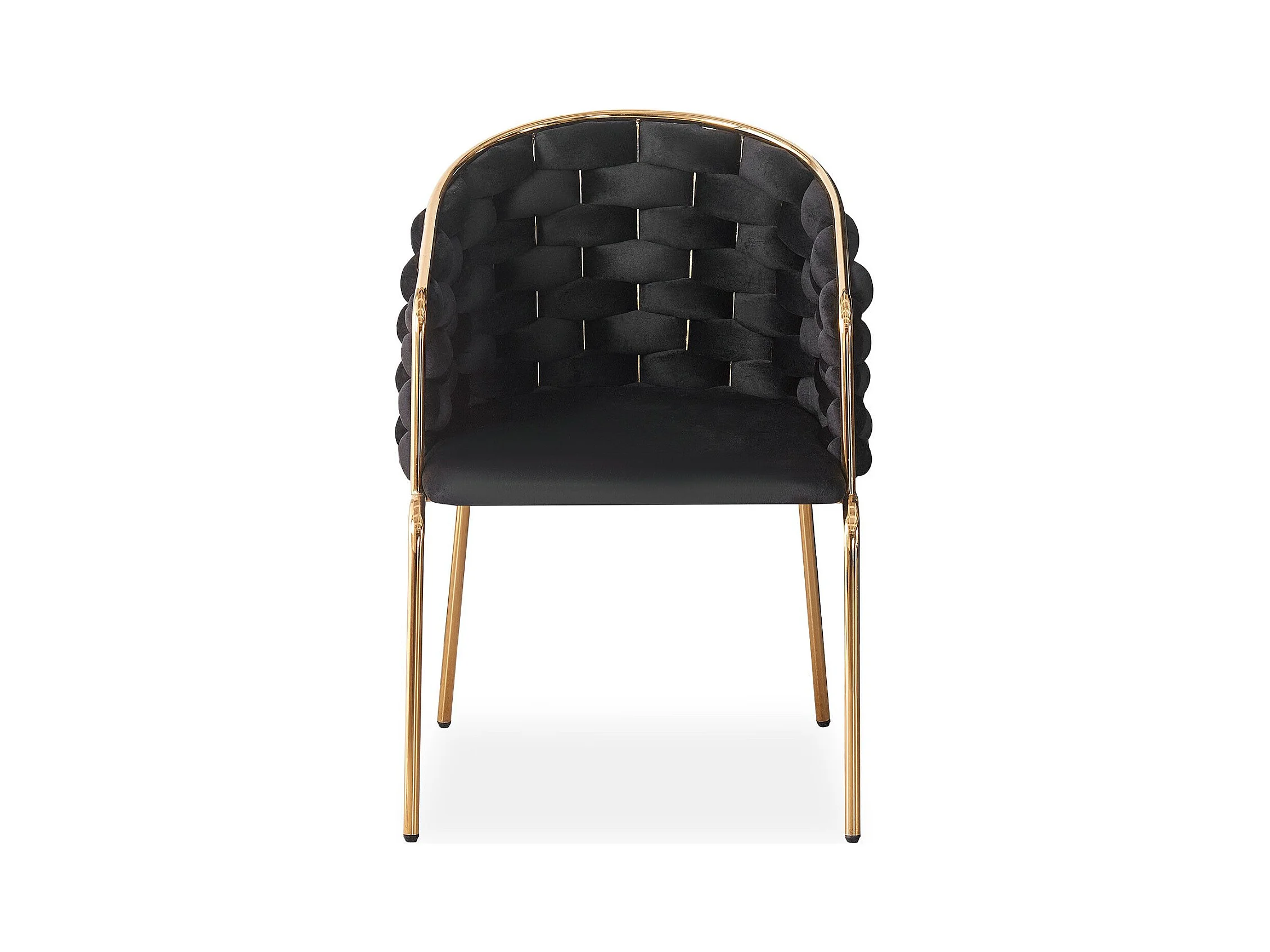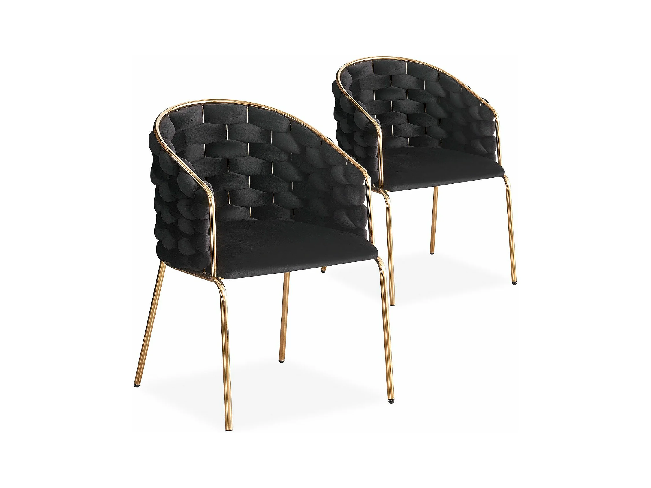 Lot de 2 chaises design au dossier arrondi style maillage Tricotane Velours Noir et Métal Or