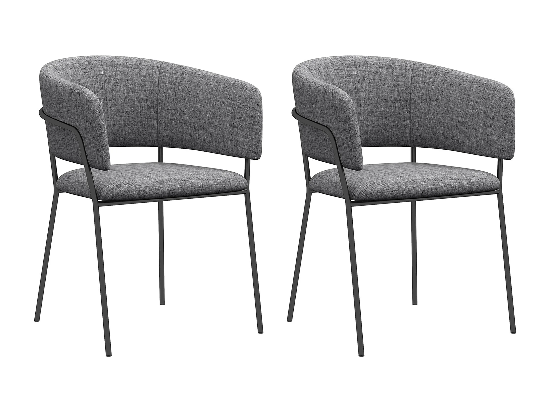 Lot de 2 chaises design piètement acier noir aspect velours gris