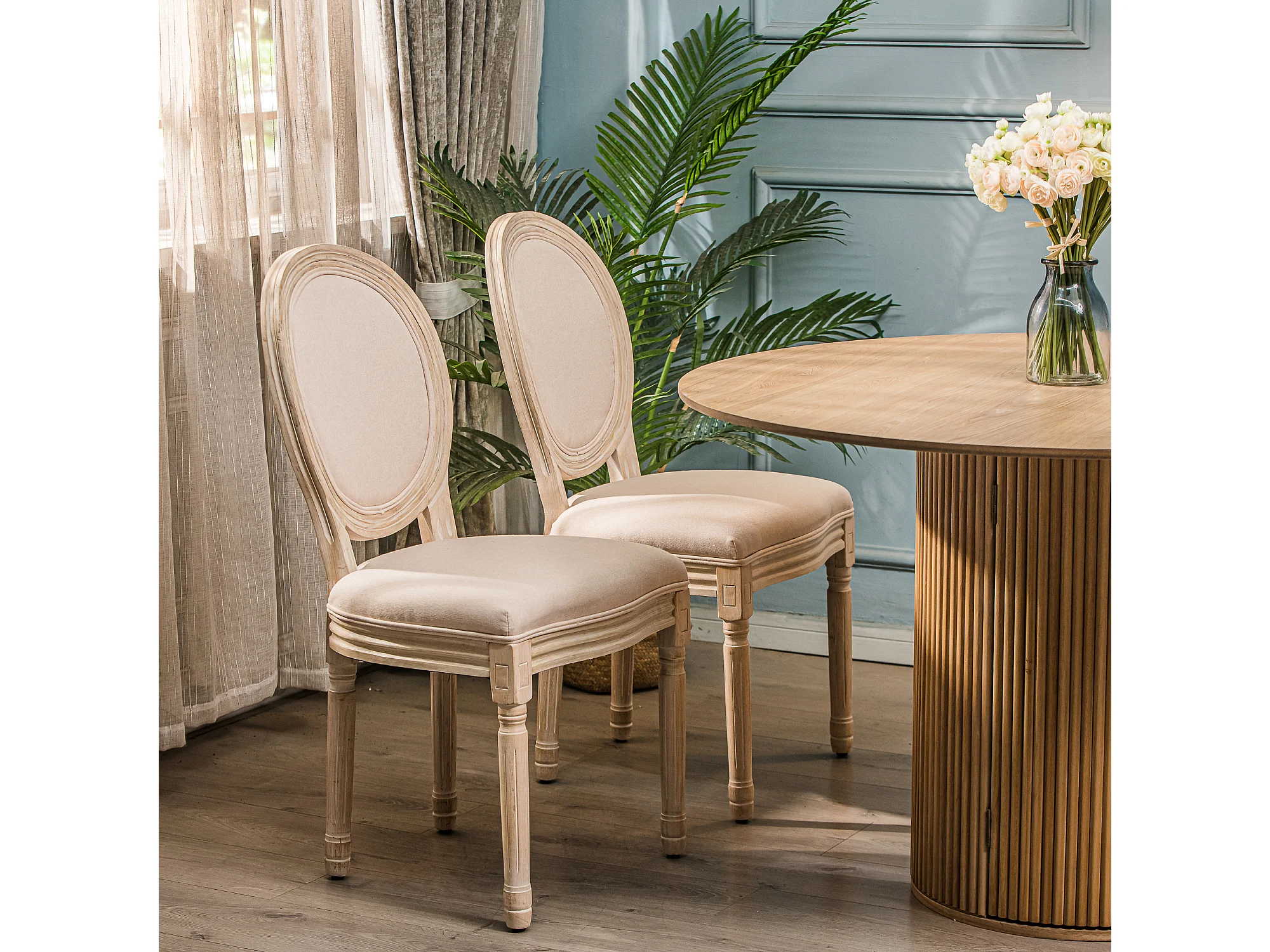 Lot de 2 chaises en bois avec assise en tissu beige