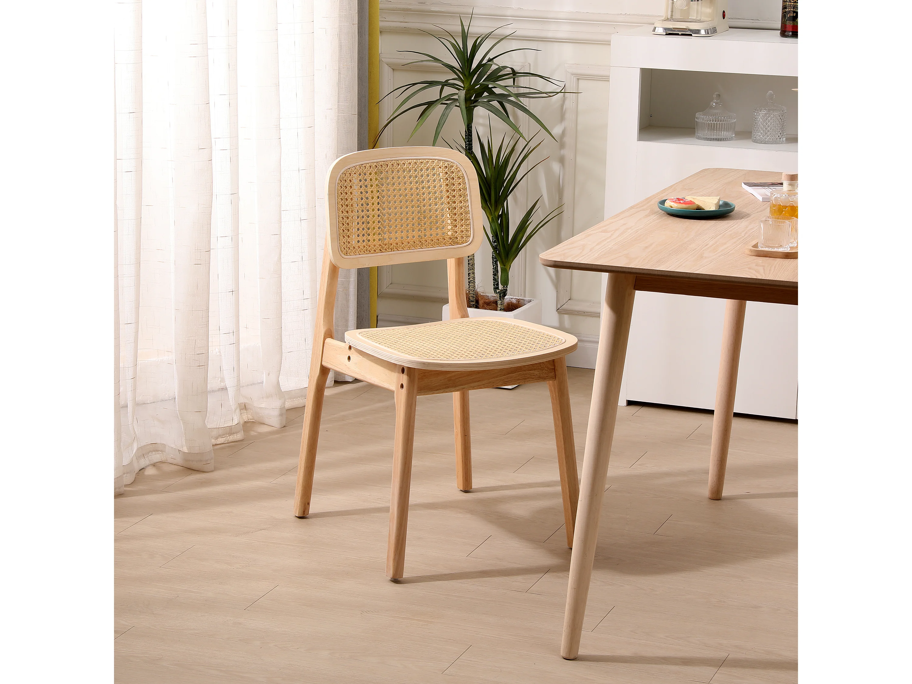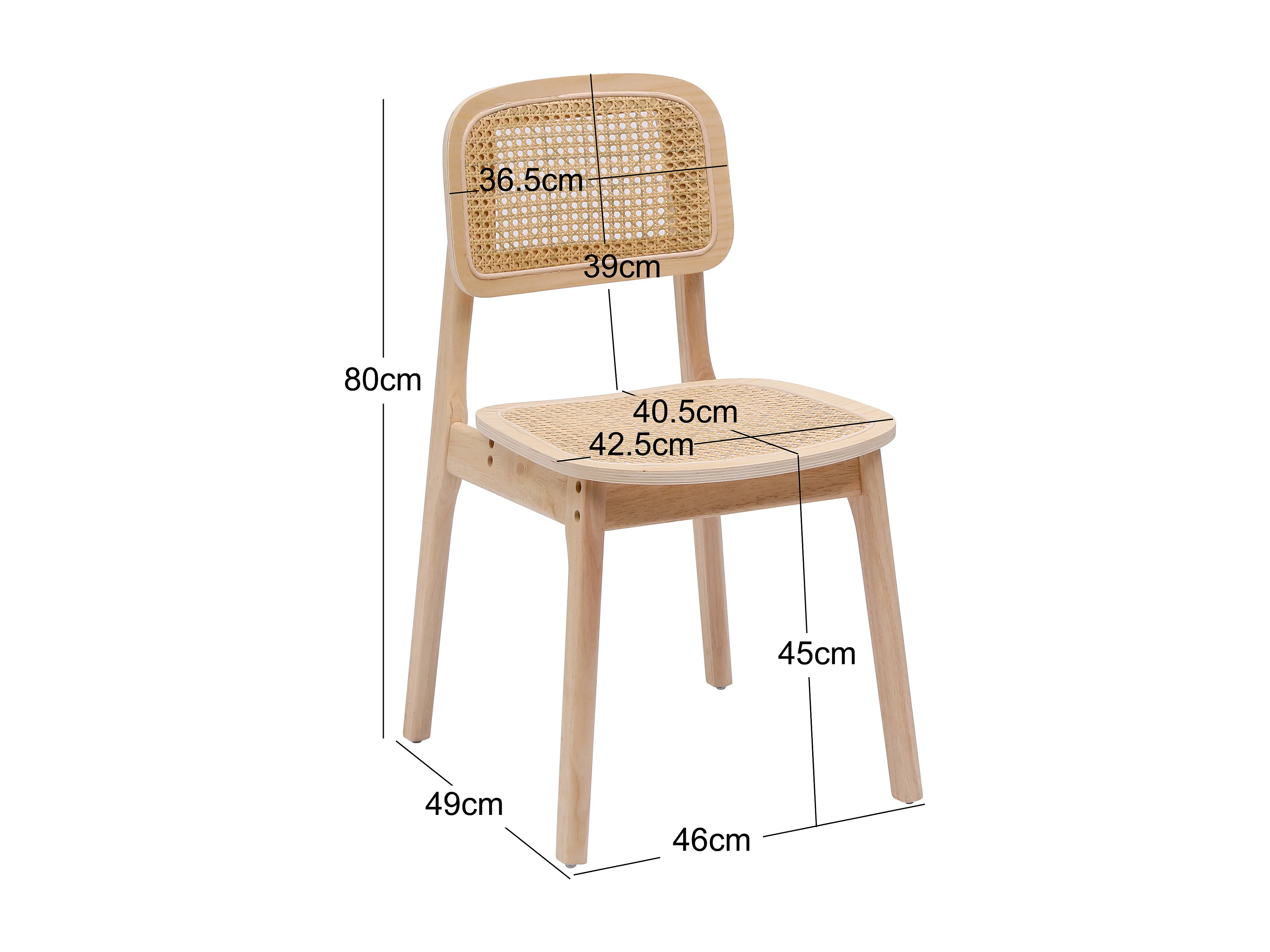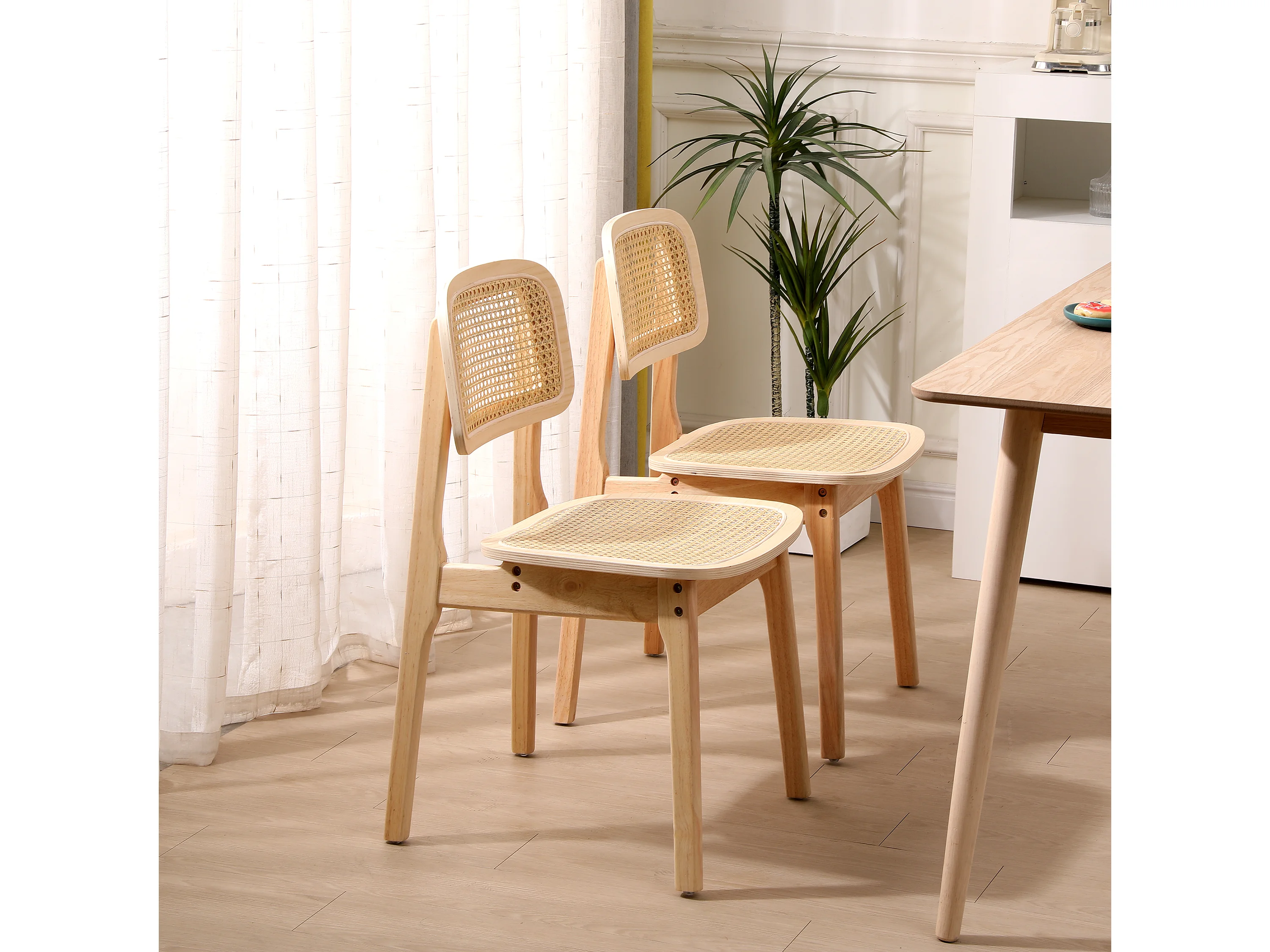 Lot de 2 chaises en bois massif et rotin naturel