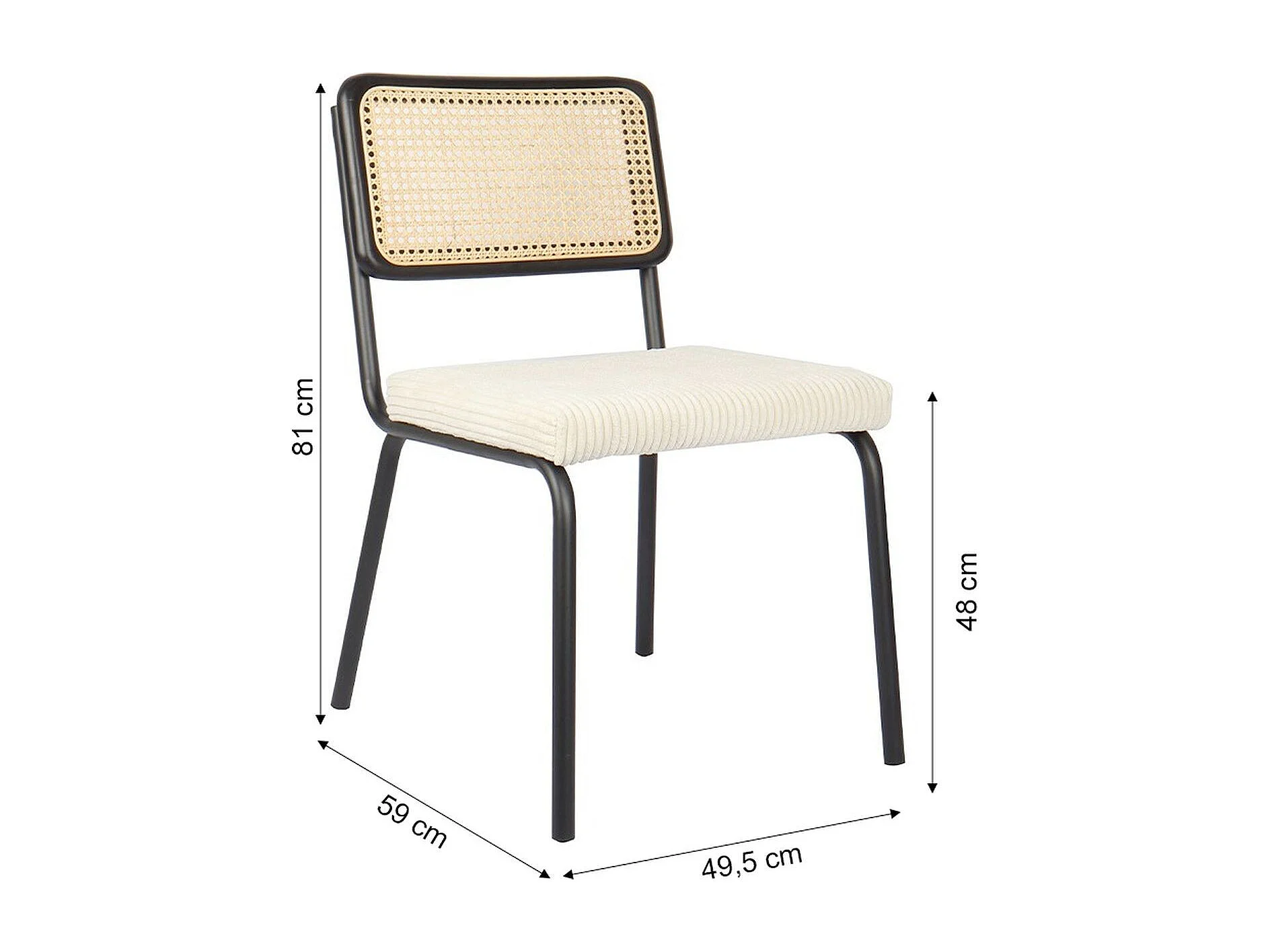 Lot de 2 chaises en métal et bois noir, cannage naturel et velours côtelé beige - Paula