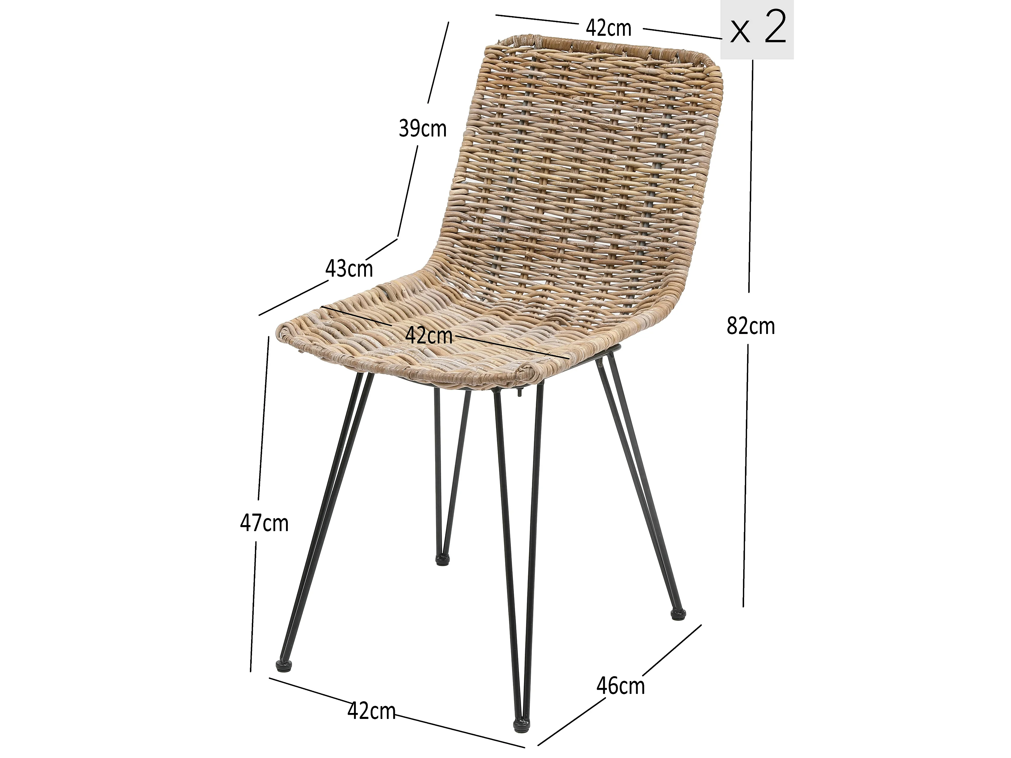 Lot de 2 chaises en métal et rotin naturel