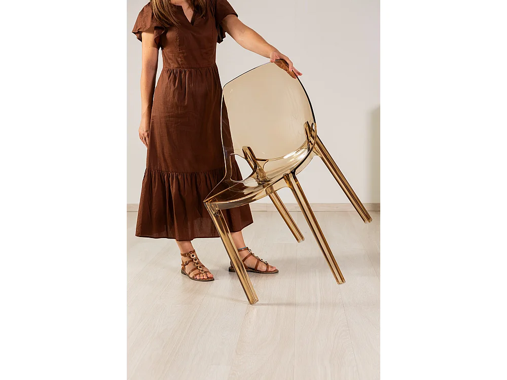 Lot de 2 chaises en polycarbonate transparent, empilables, monobloc, résistantes, design moderne, idéales pour cuisine, bar et restaurant - LUCE - Champagne