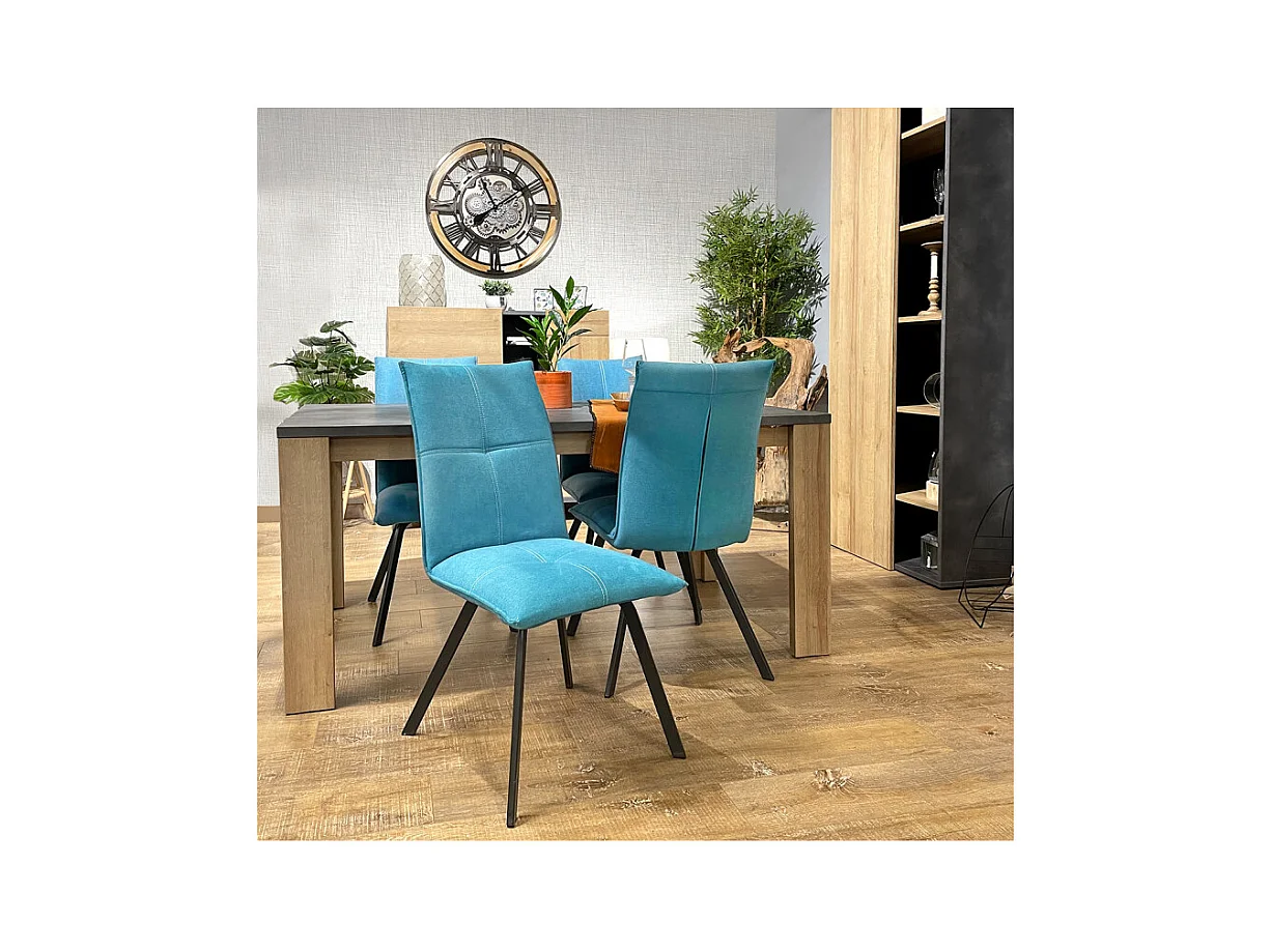 Lot de 2 chaises en tissu bleu avec piètement en métal - ARIA