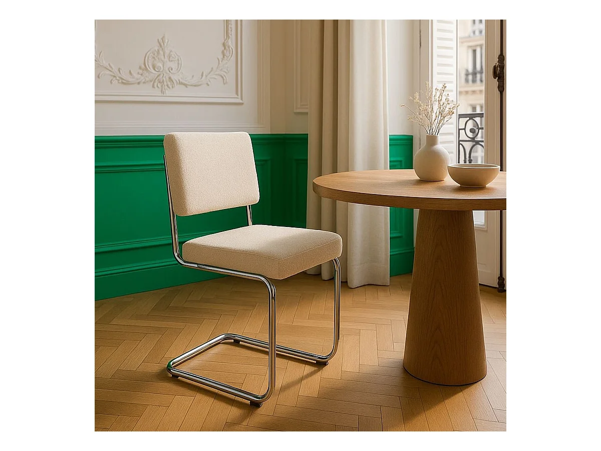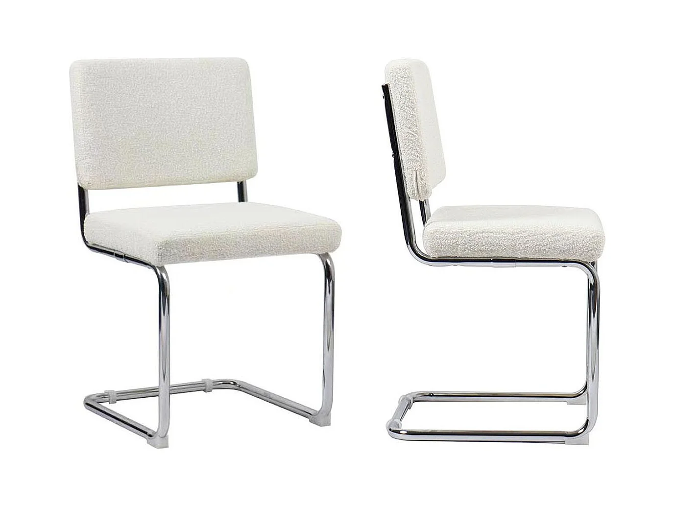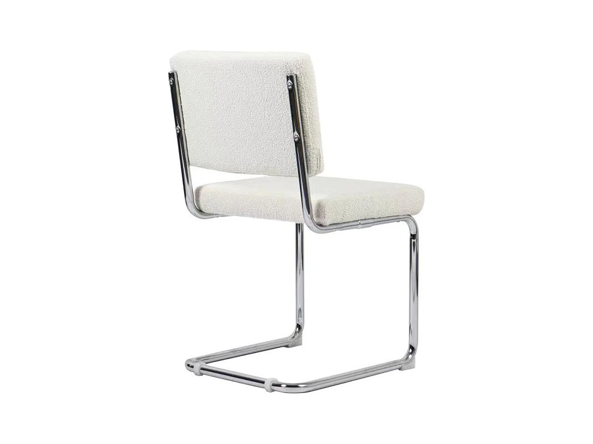 Lot de 2 chaises en tissu bouclé écru et métal chromé - Dulce