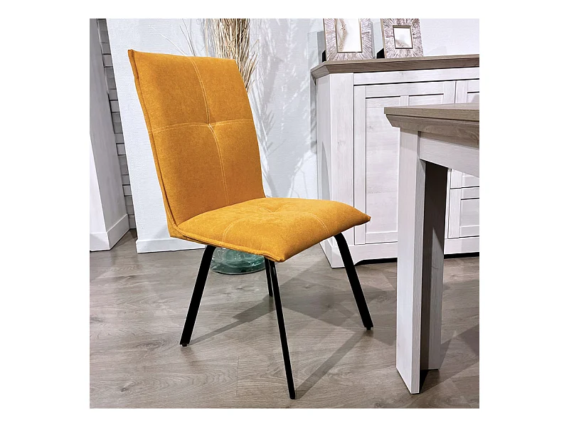 Lot 2 chaises en tissu surpiqué jaune pieds métal noir – ARIA 2
