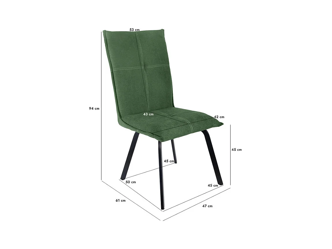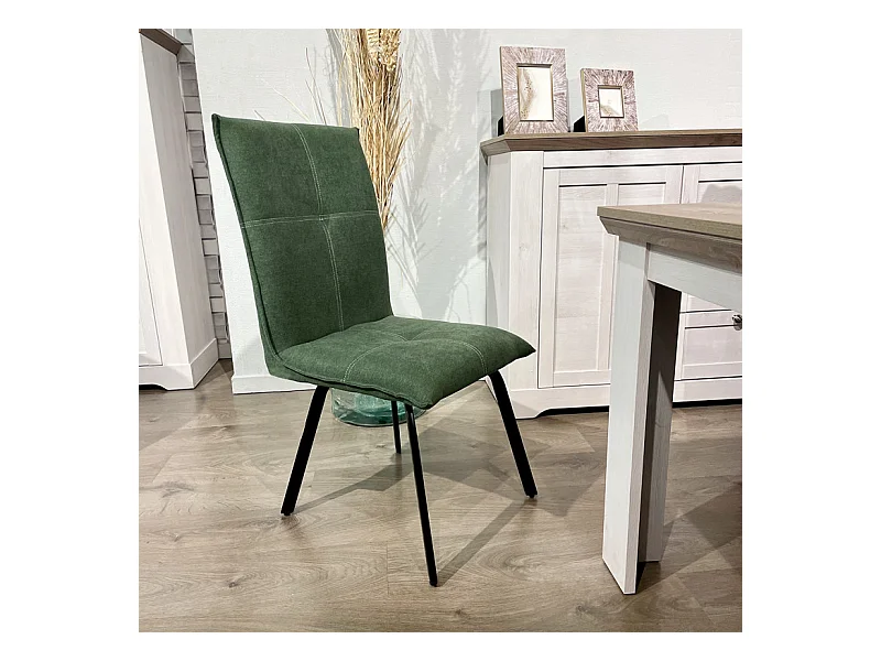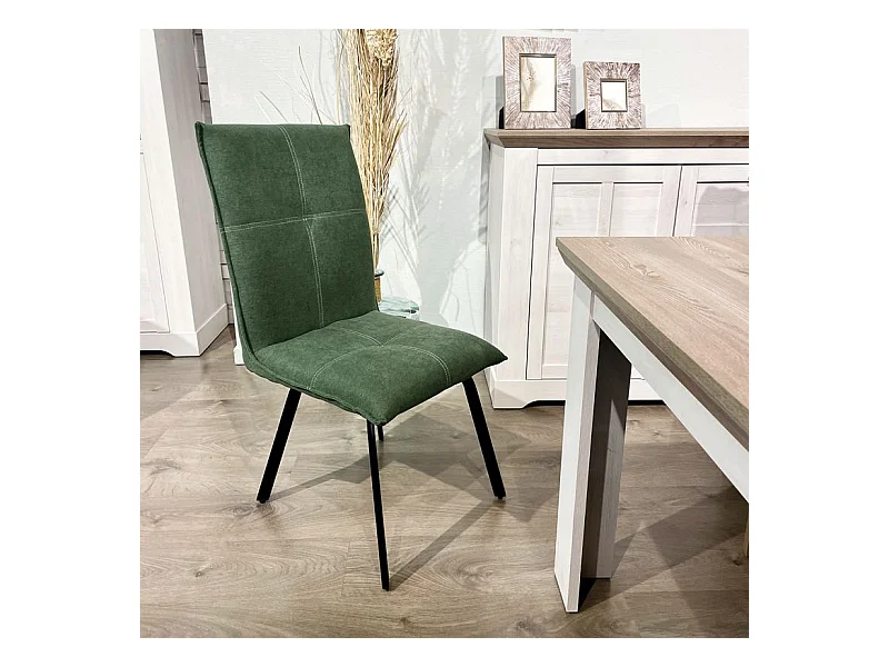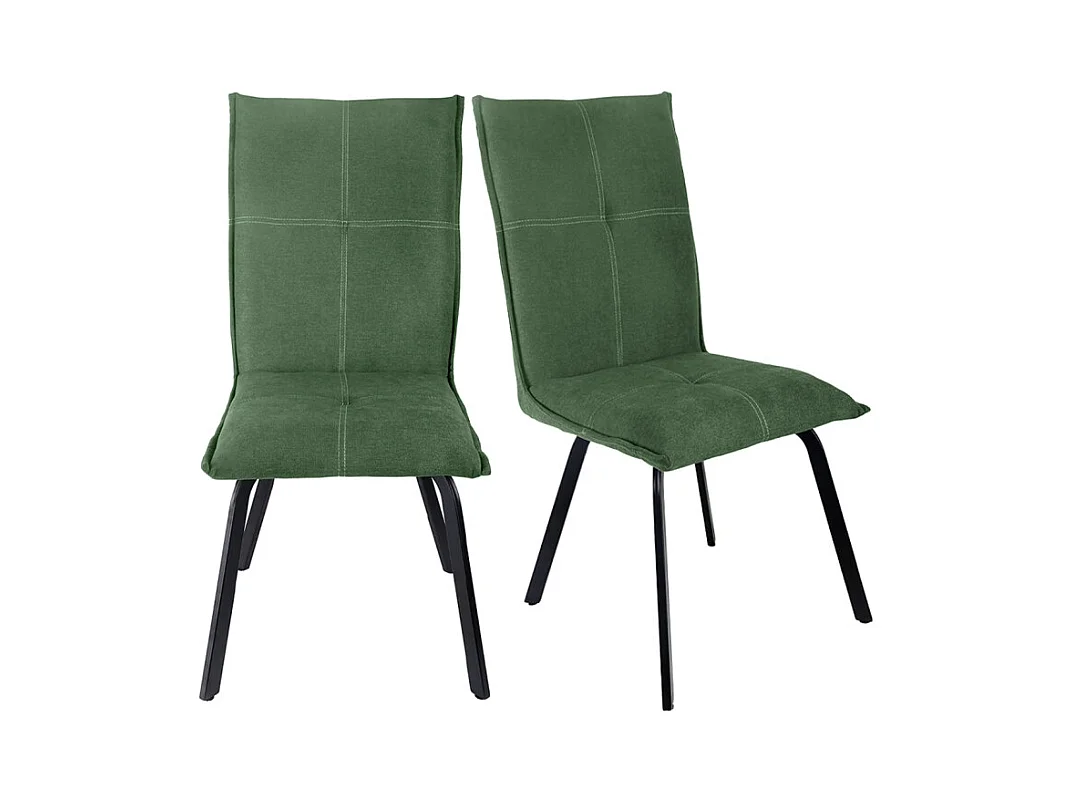 Lot 2 chaises en tissu surpiqué vert et pieds métal noir – ARIA 2
