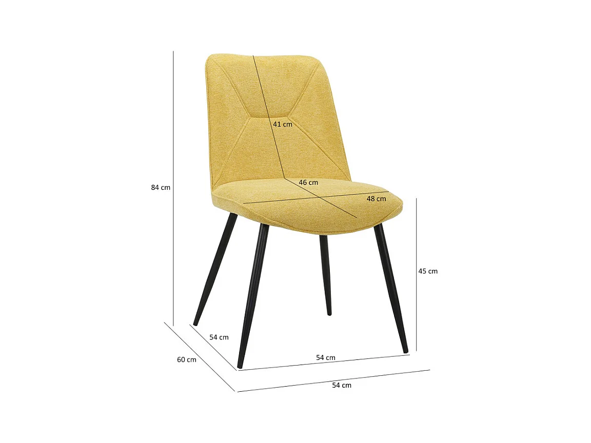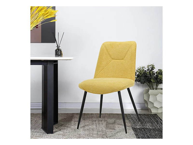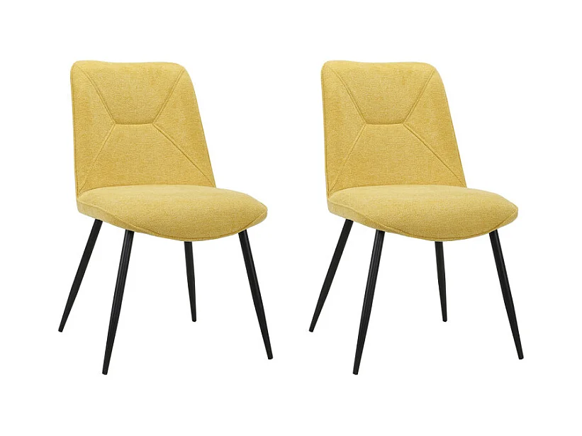 Lot de 2 chaises en tissu jaune et 4 pieds en métal noir - MELANIE