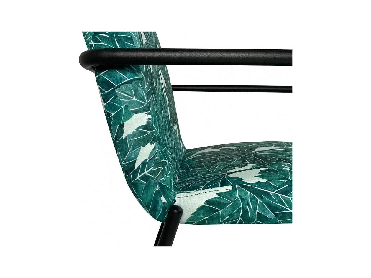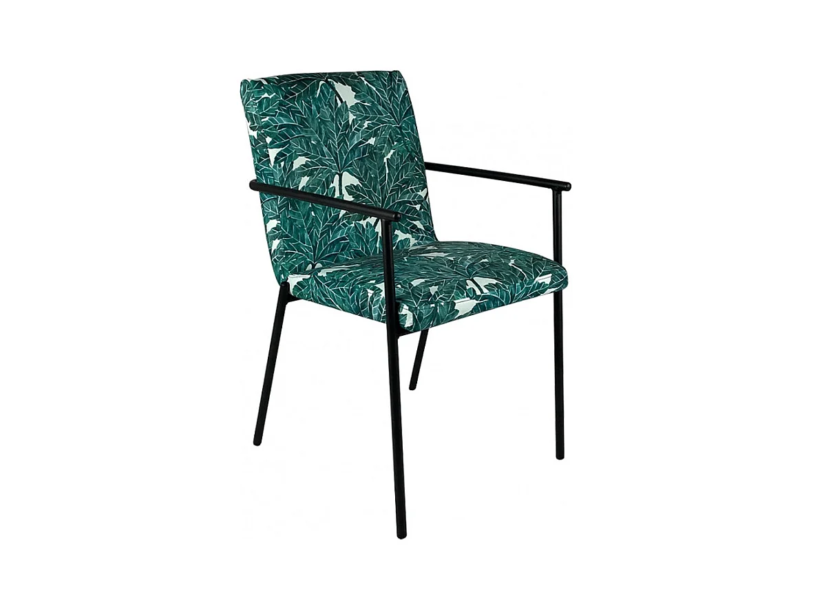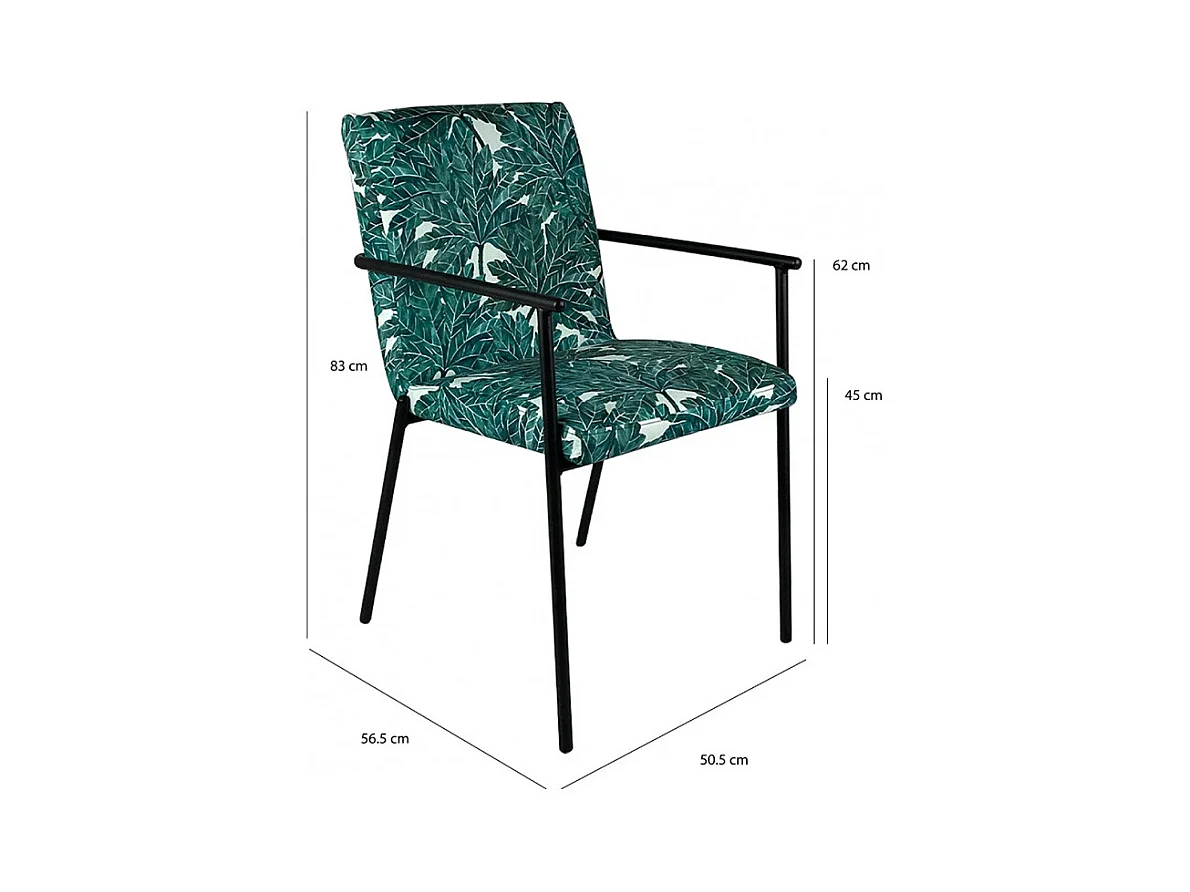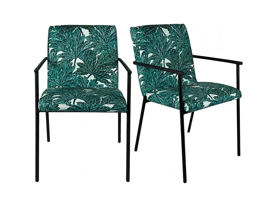 Lot de 2 chaises en tissu vert motif feuilles avec accoudoirs - OFFICE 1708