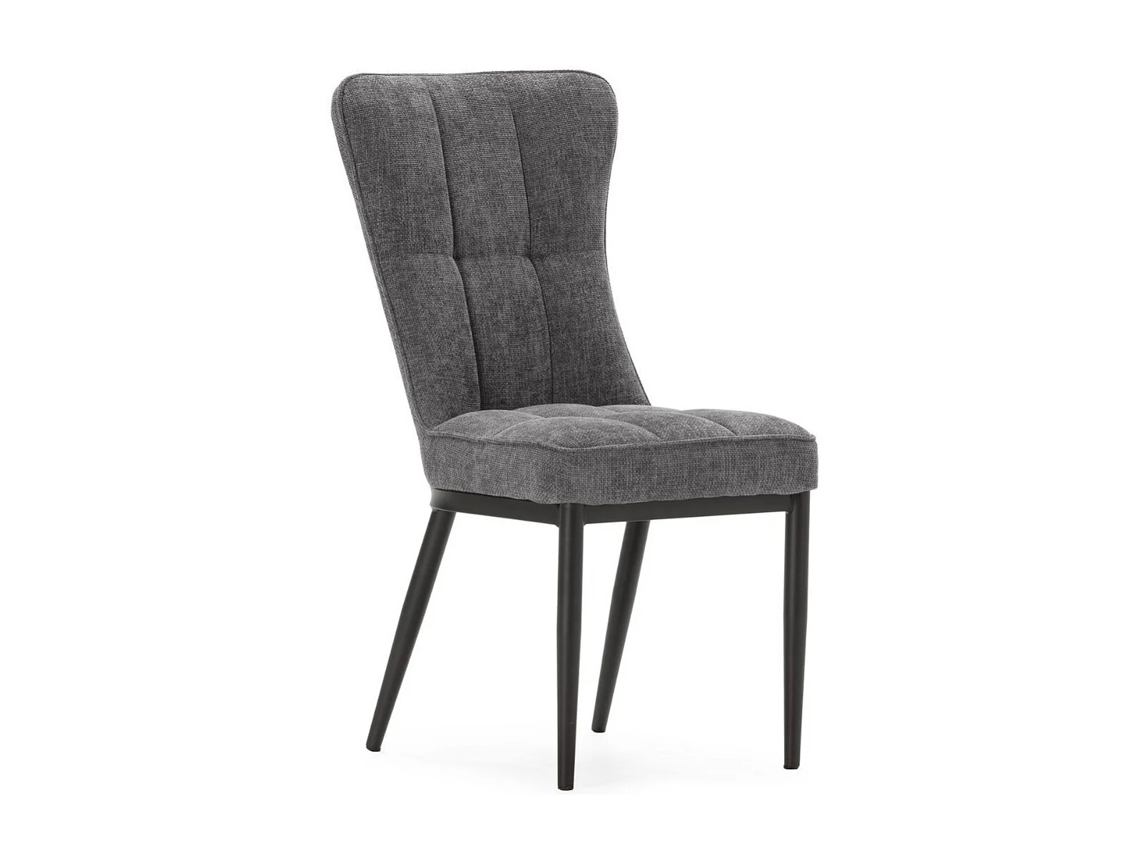Lot de 2 chaises en tissu polyester doux gris et pieds en métal laqué noir - DAMYAN