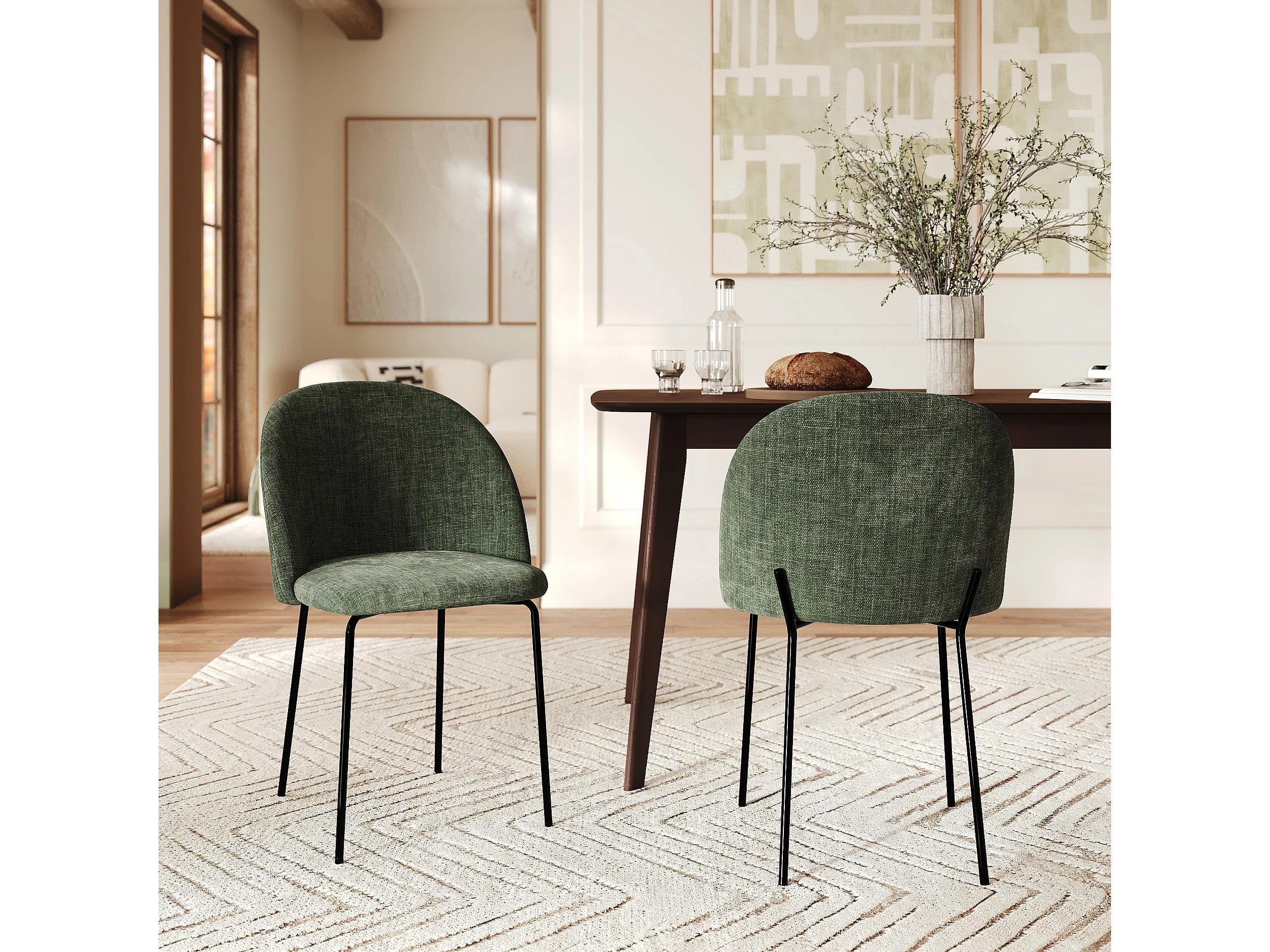 Lot de 2 chaises en tissu texturé vert sapin - Karl