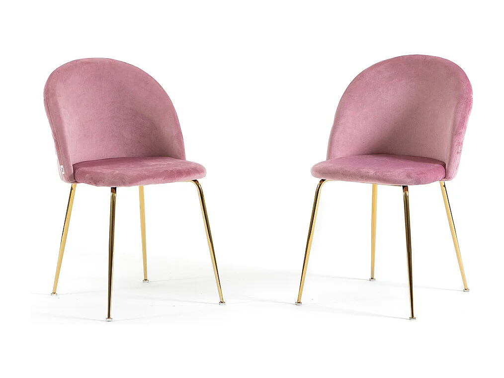 Lot de 2 chaises en velours avec pieds en métal, design élégant pour cuisine, salle à manger, bar ou restaurant – Sara – Rose/Or